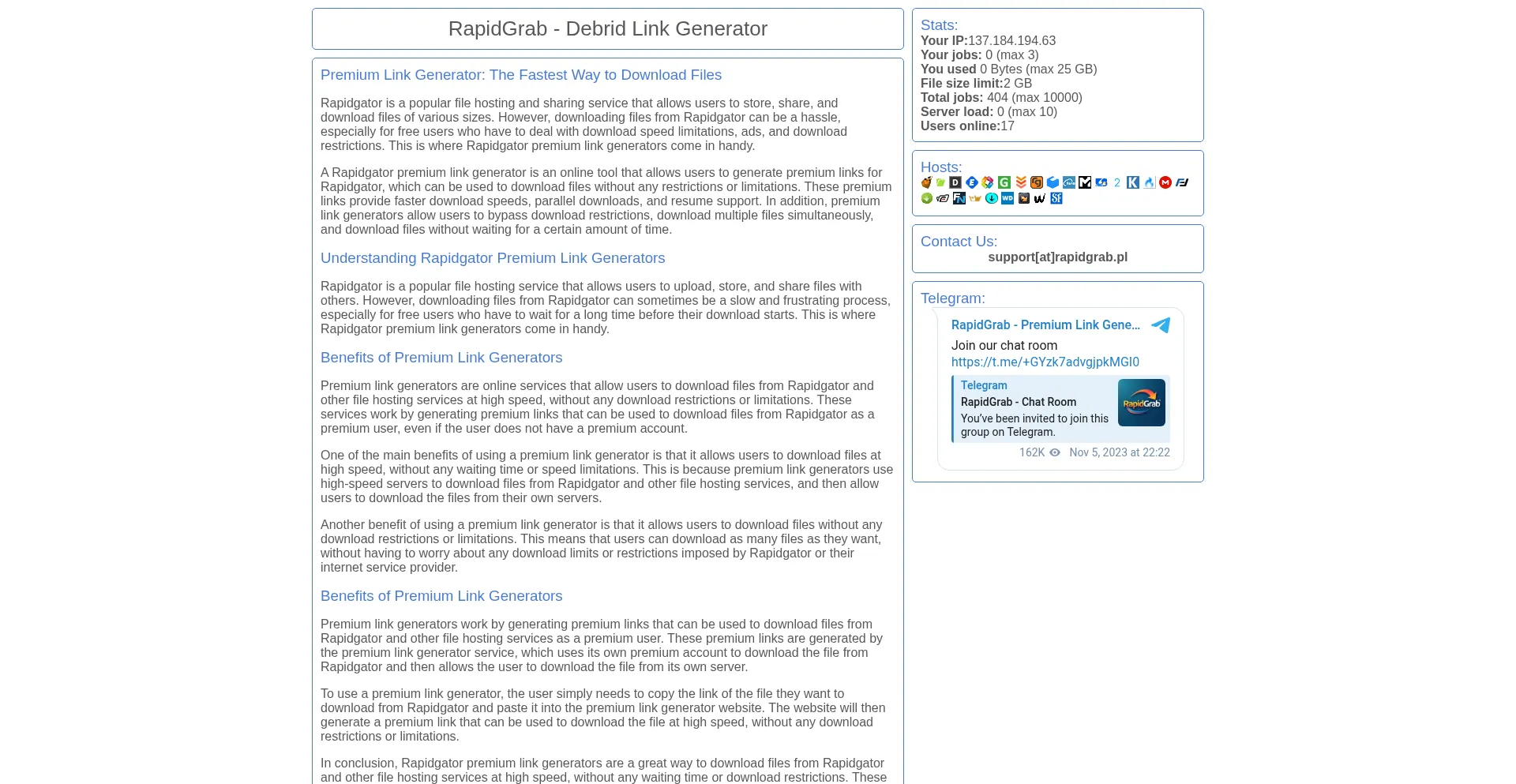 RapidGrab - FREE Premium Link Generator