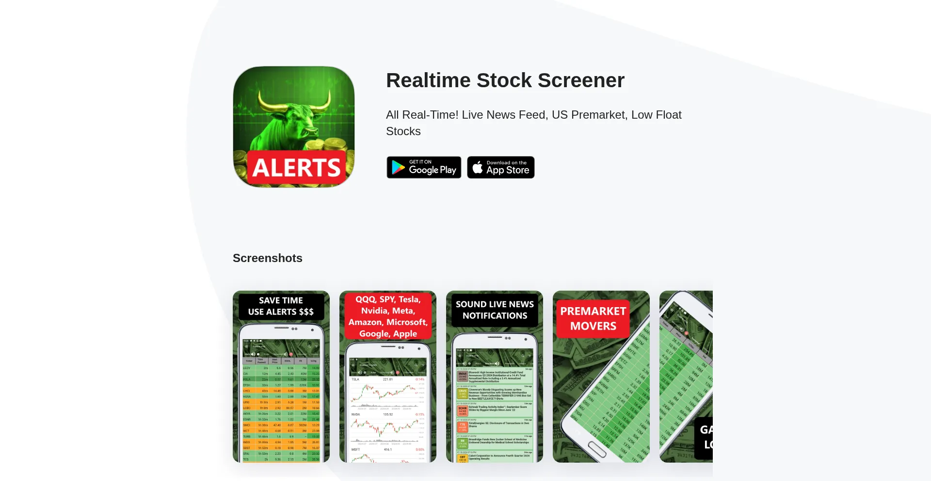 Realtime Stock Screener: Premarket, Low Float Stocks