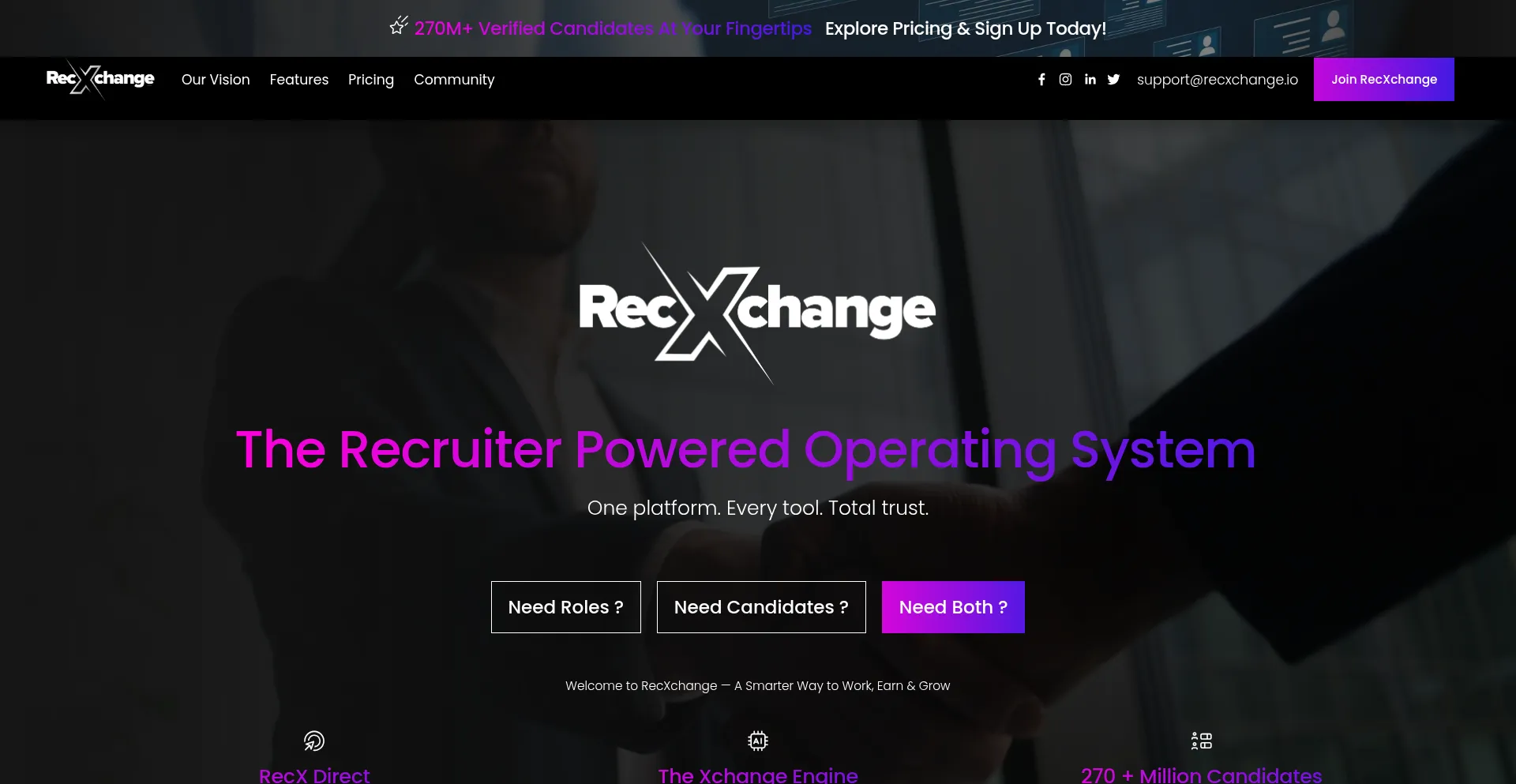 RecXchange is a global recruiter community platform for seamless collaboration, AI-driven matching, and fee sharing, designed to enhance recruitment efficiency and trust.