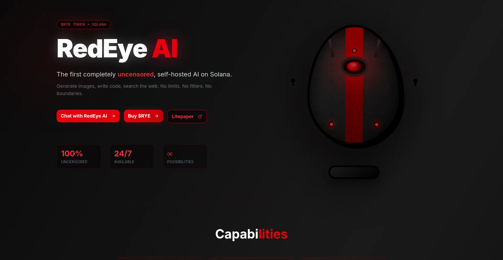 The first completely uncensored, self-hosted AI on Solana. Generate images, write code, search the web. No limits. No filters. No boundaries. Powered by $RYE token.