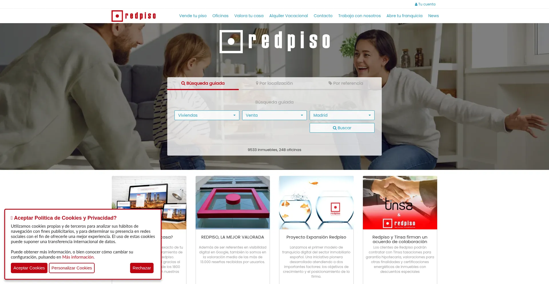 Inmobiliaria en Madrid Redpiso. También en Valencia, Sevilla, Barcelona, Zaragoza, Murcia y principales provincias españolas. Líder del sector en compra y venta de inmuebles.