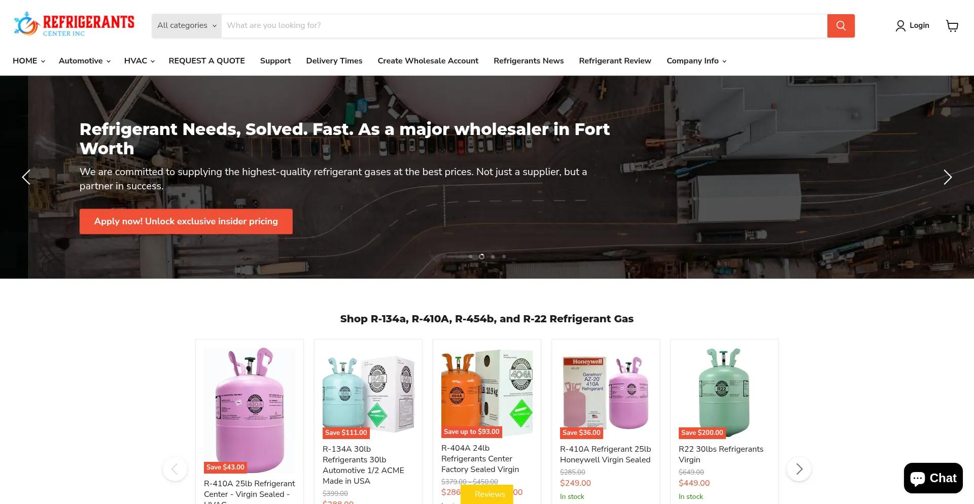 Refrigerant Center INC online refrigerant buy R-410A, R-134A, R-454B, and R-22. wholesale solutions, fast shipping and best prices for HVAC and automotive.