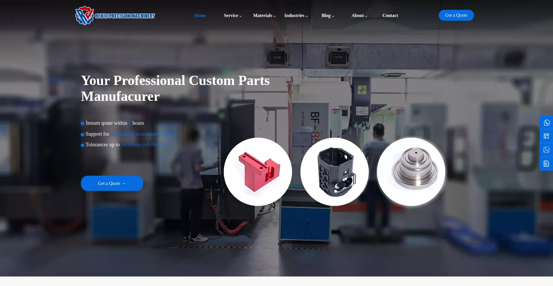 Renjie is a professonial custom parts manufacturer from china,offering  low-volume production and hig quality online oem machining service,MOQ is 1, Get qoutes now!
