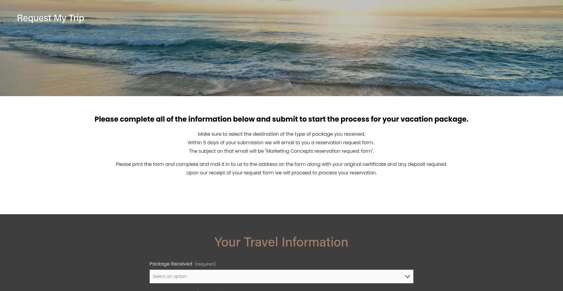Please complete all of the information below and submit to start the process for your vacation package.