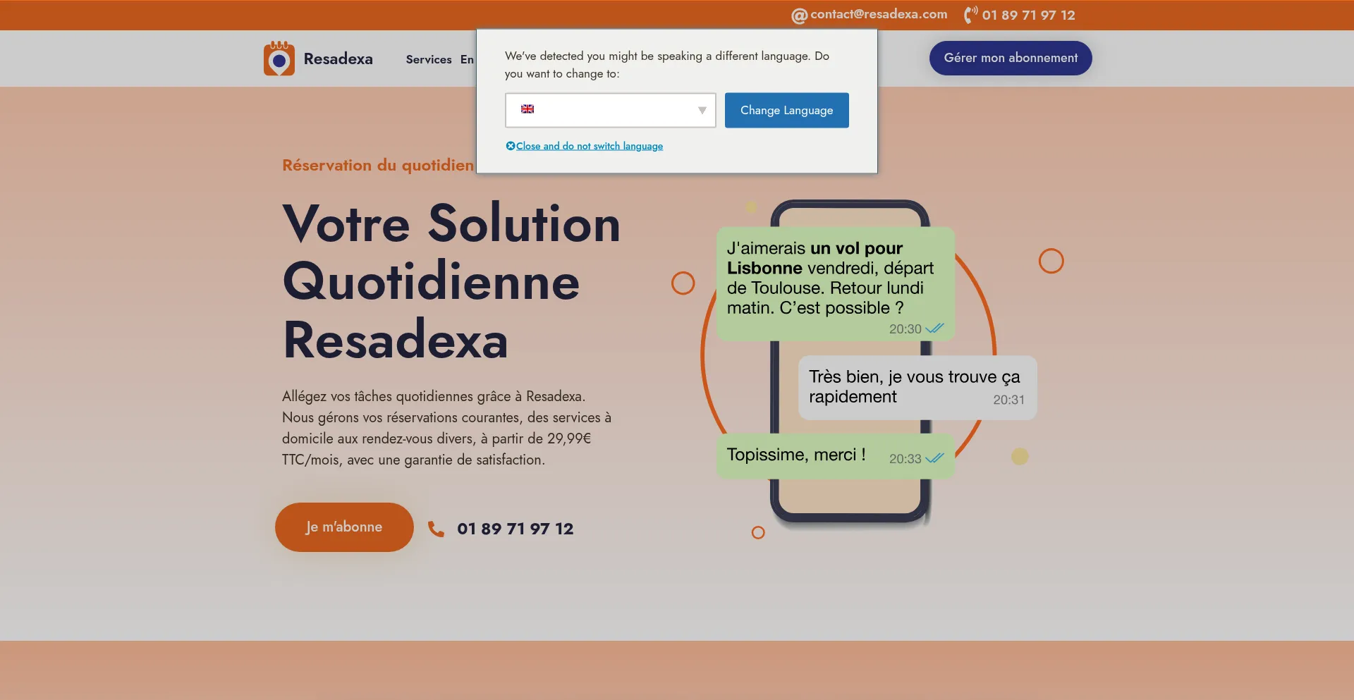 Gérez vos réservations du quotidien en toute simplicité avec Resadexa. Bénéficiez d'un assistant personnel disponible tous les jours de la semaine.