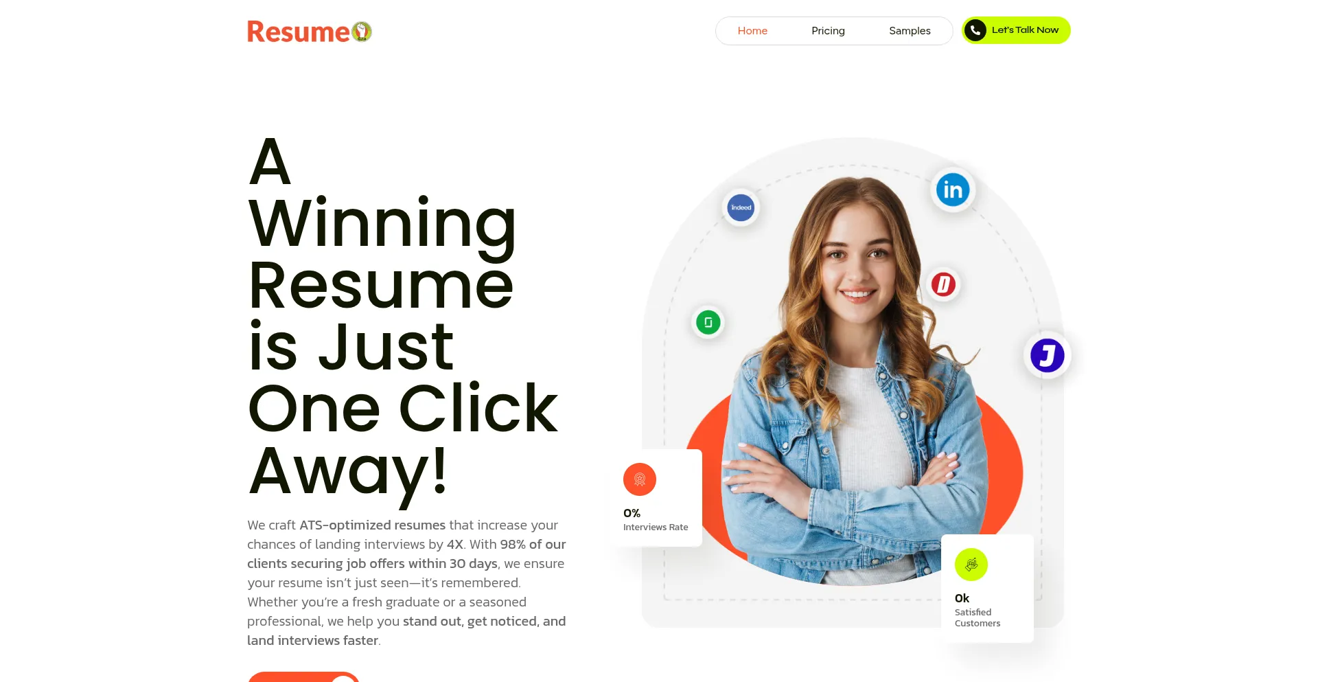 We craft ATS-optimized resumes that increase your chances of landing interviews by 4X. With 98% of our clients securing job offers within 30 days, we ensure