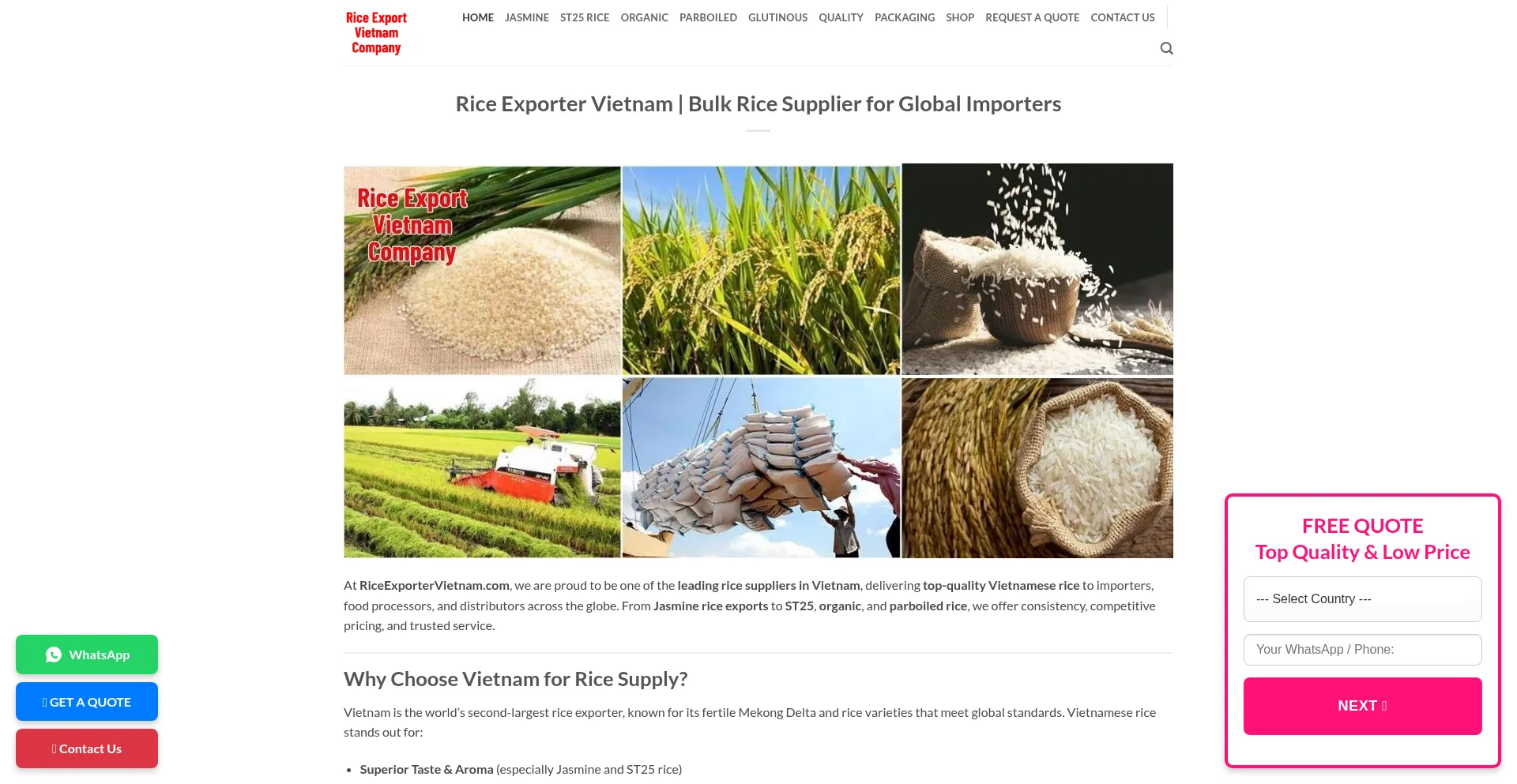 Leading Vietnamese rice exporter. Get top-quality Jasmine, ST25, Organic & Glutinous rice at low prices for global import.