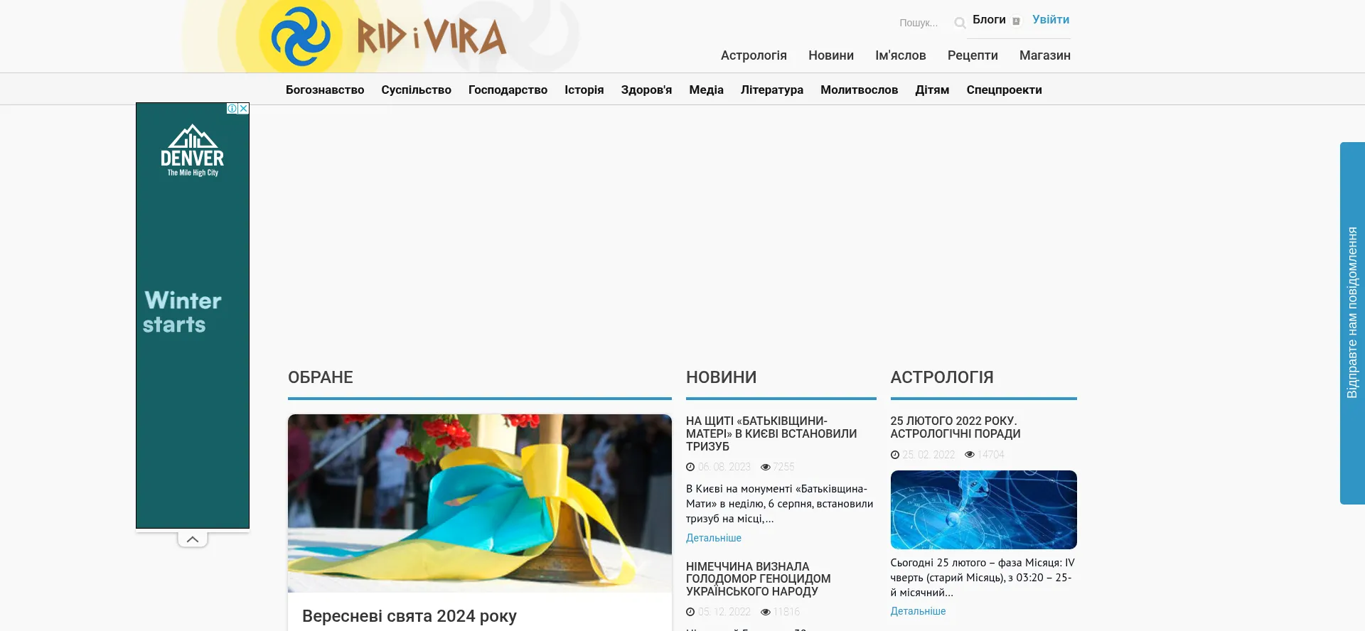 Рід і Віра -Портал присвячений розвитку української Рідної Віри