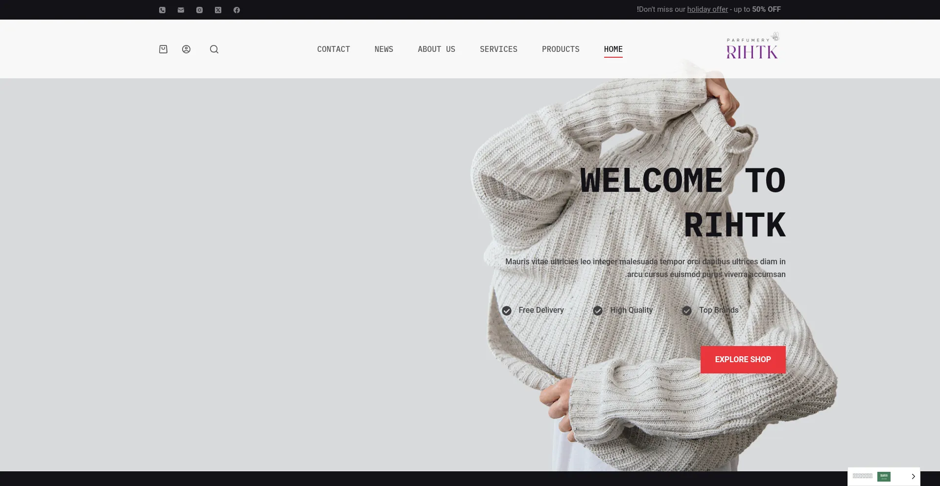 L'analyse révÚle que rihtk.com affiche des icÎnes ou liens de médias sociaux qui ne se connectent pas à des profils légitimes de médias sociaux. Cette pratique trompeuse est couramment employée pour créer une fausse légitimité et représente un indicateur significatif d'intention frauduleuse nécessitant une prudence immédiate.