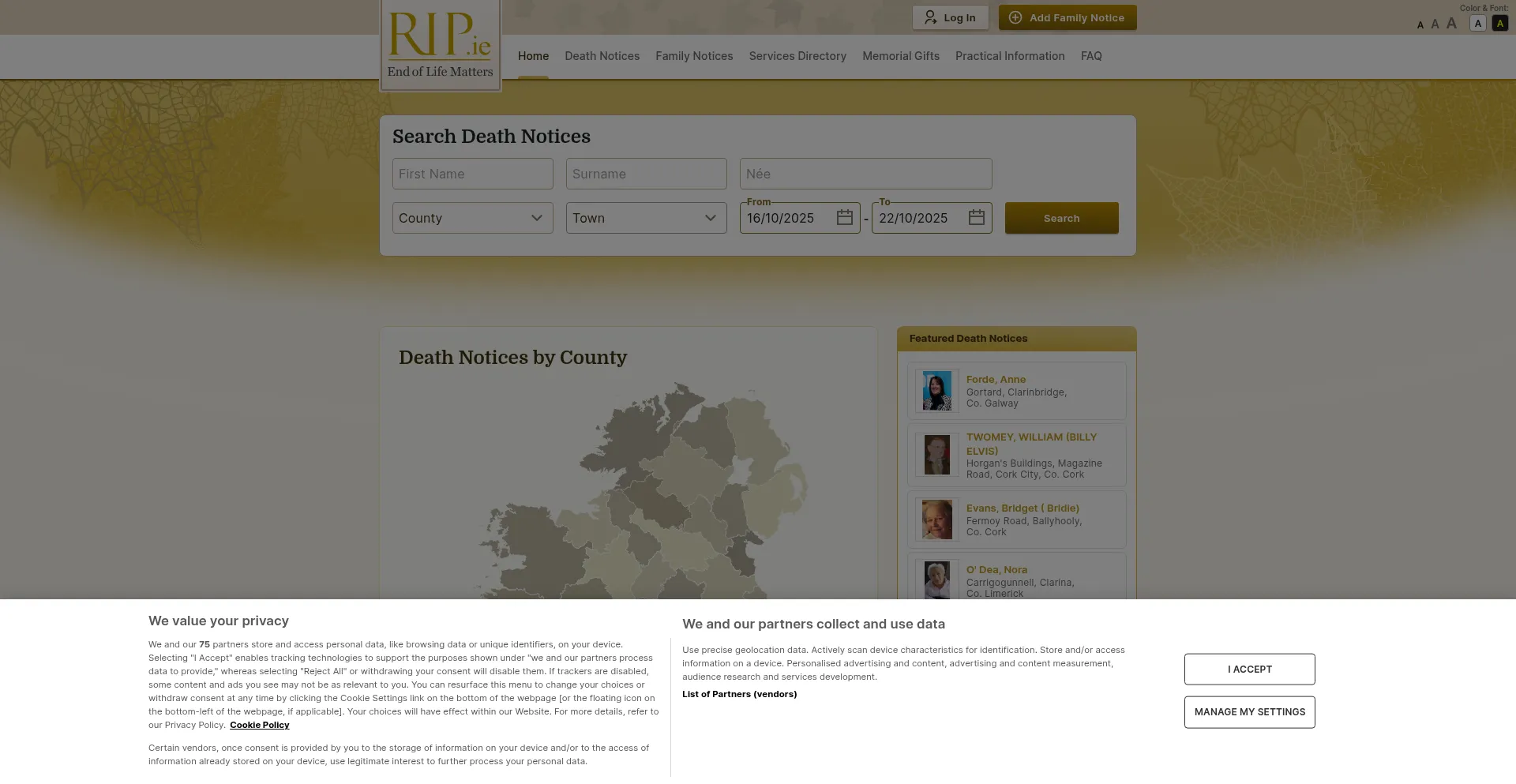 RIP.ie - most recent death notices | rip.ie