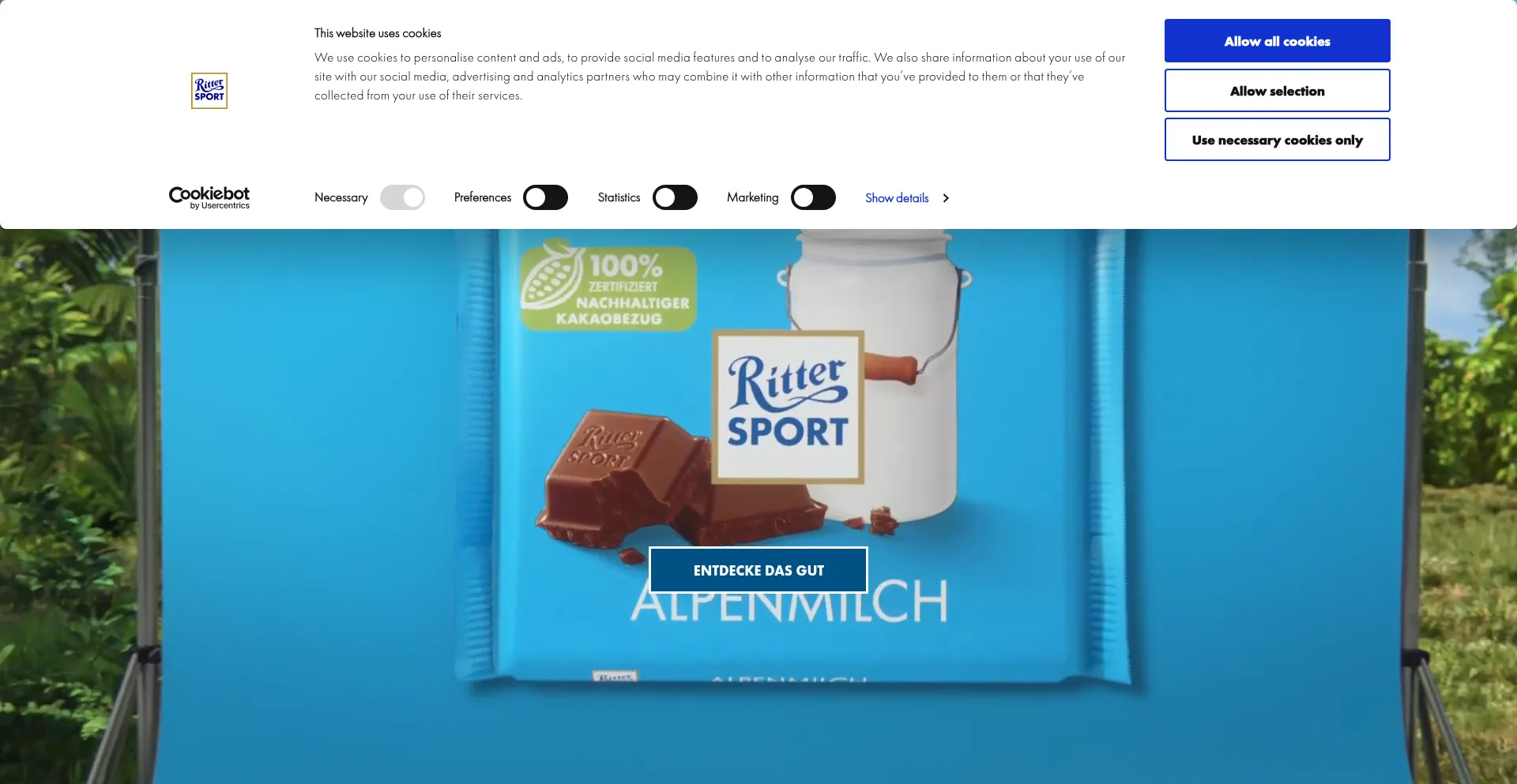 Le site web implémente des mécanismes de consentement aux cookies en conformité avec les réglementations de confidentialité telles que RGPD ou CCPA. Cela démontre que ritter-sport.de adhÚre aux standards de protection des données et fournit aux utilisateurs un contrÎle sur les pratiques de collecte de données personnelles.