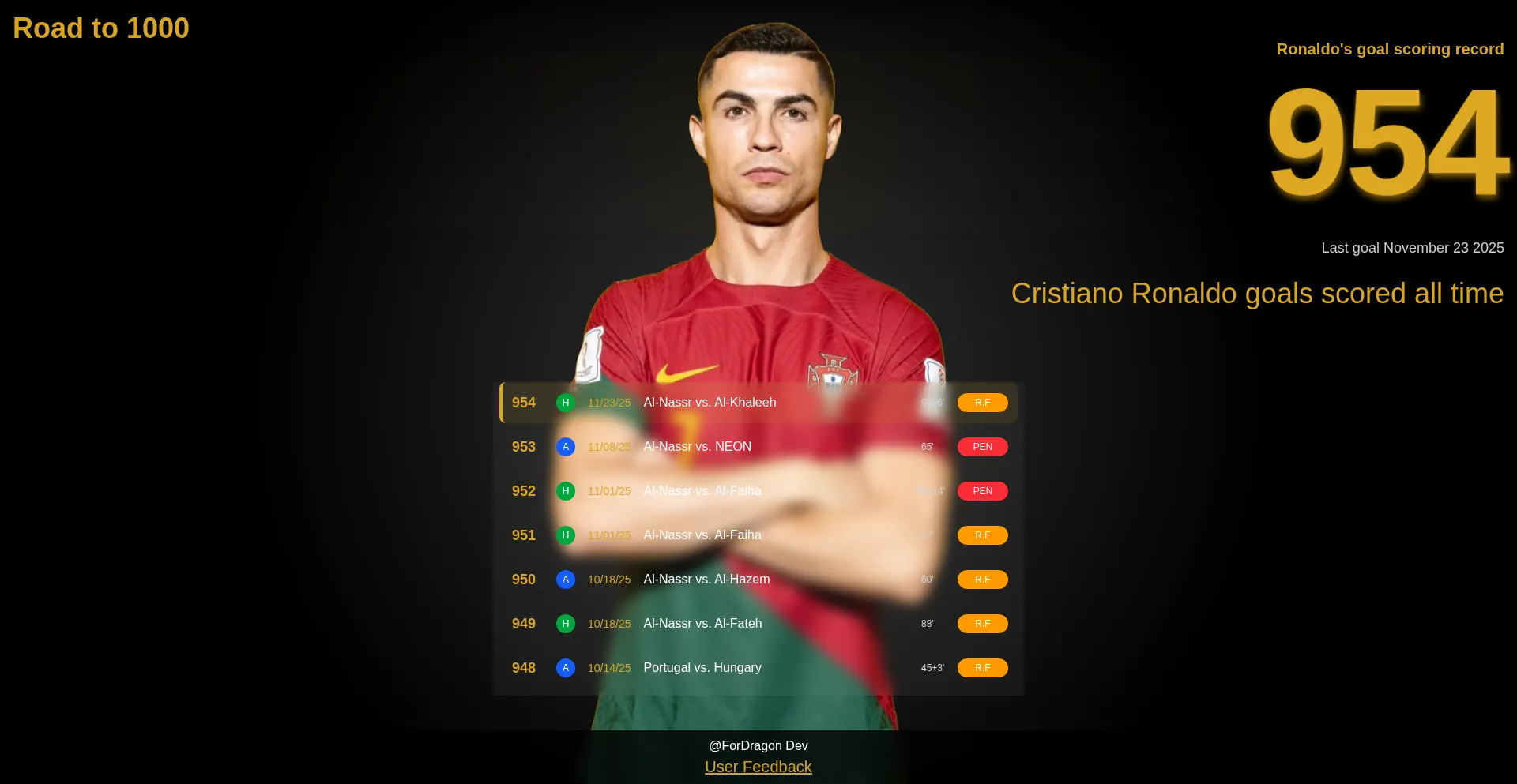 Cristiano Ronaldo's Road to 1000 Goals | Goal Tracker: Live Updates.