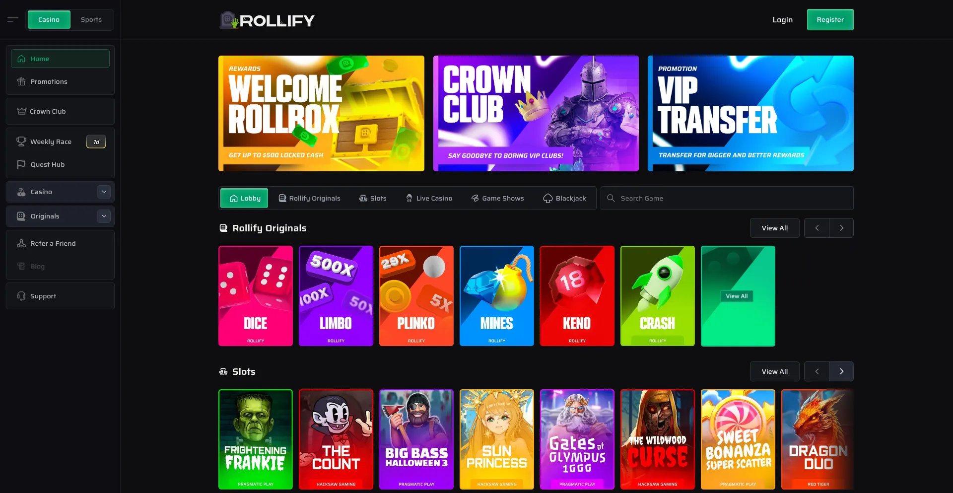 Discover Rollify Casino, the best crypto casino for thrilling games, instant payouts, and unbeatable crypto bonuses. Join now and start winning big!