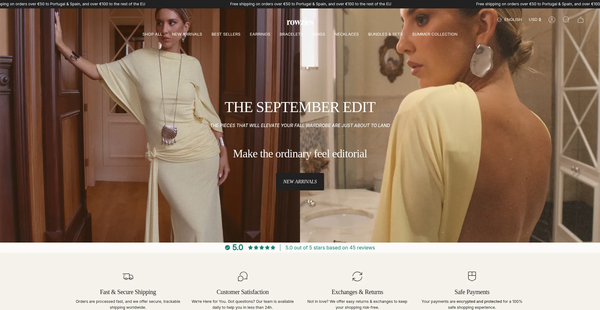 Rowzies pieces are made from premium, tarnish-resistant materials like 18k PVD gold-plated stainless steel, ensuring lasting quality and style.