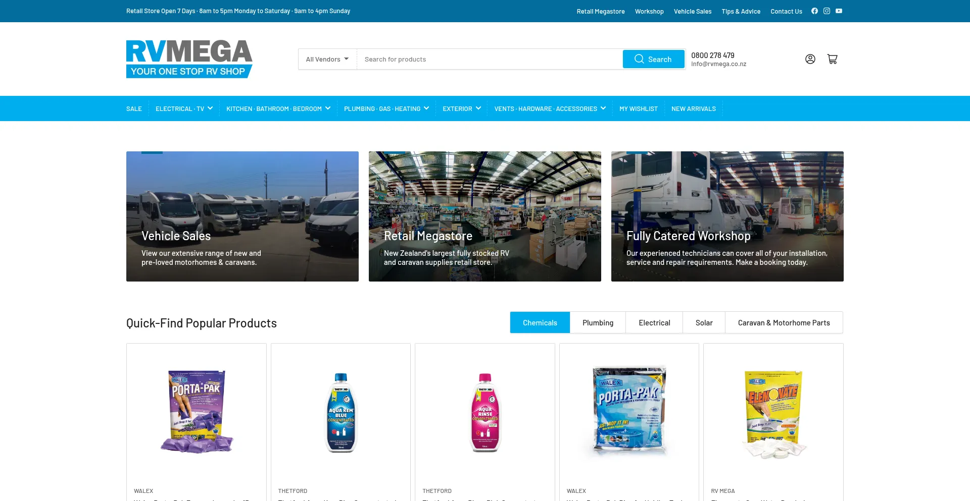 RV MEGA stocks the North Island’s biggest range of accessories, parts and supplies for RVs, caravans and motorhomes. Visit in-store or shop online.