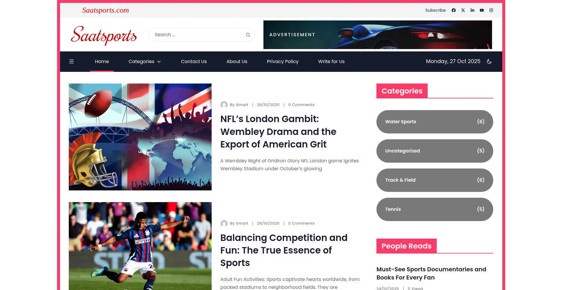 Sports, In Development, Wordpress Platform, Advertising Network, Google Tag Manager, SEO Optimization, Facebook Integration, Young Domain