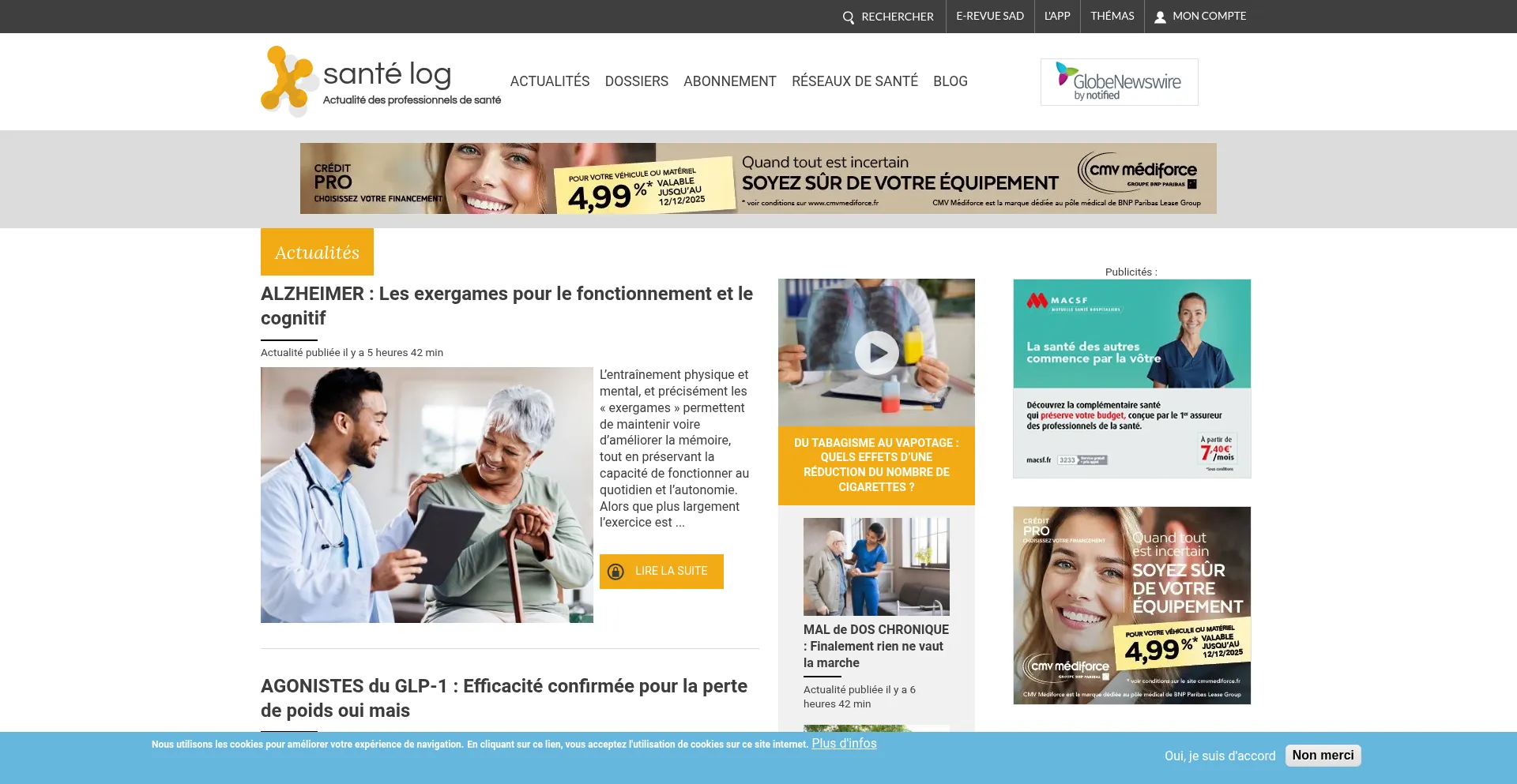 Santé log site dédié à l'actualité des professionnels de santé. Santé log apporte une information pertinente et de qualité sur l'actualité médicale