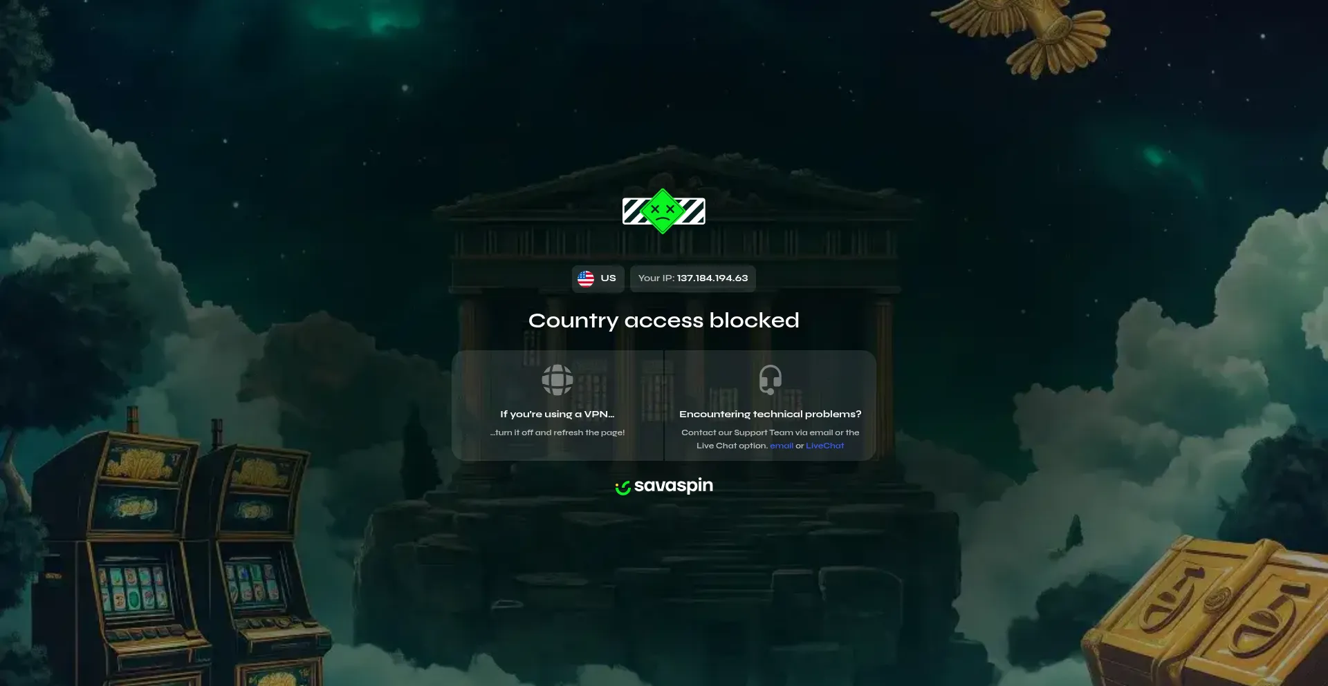 Savaspin.com Casino en ligne peu fiable