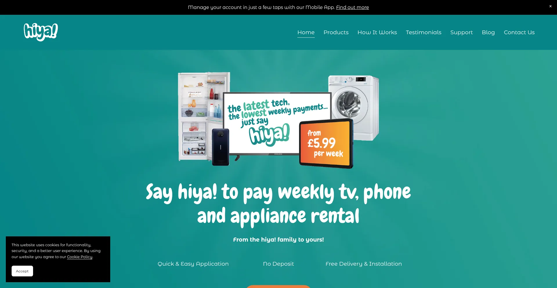 hiya! | Pay Weekly TV Rentals | Rent Smart TVs
