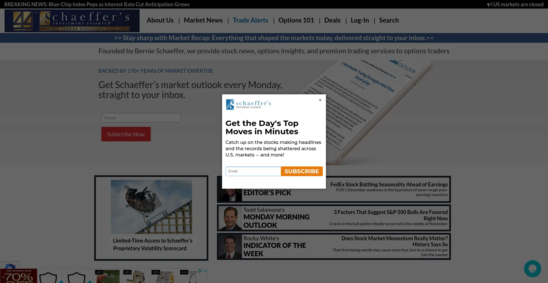 Options trade recommendations, stock market news and research, and options education.