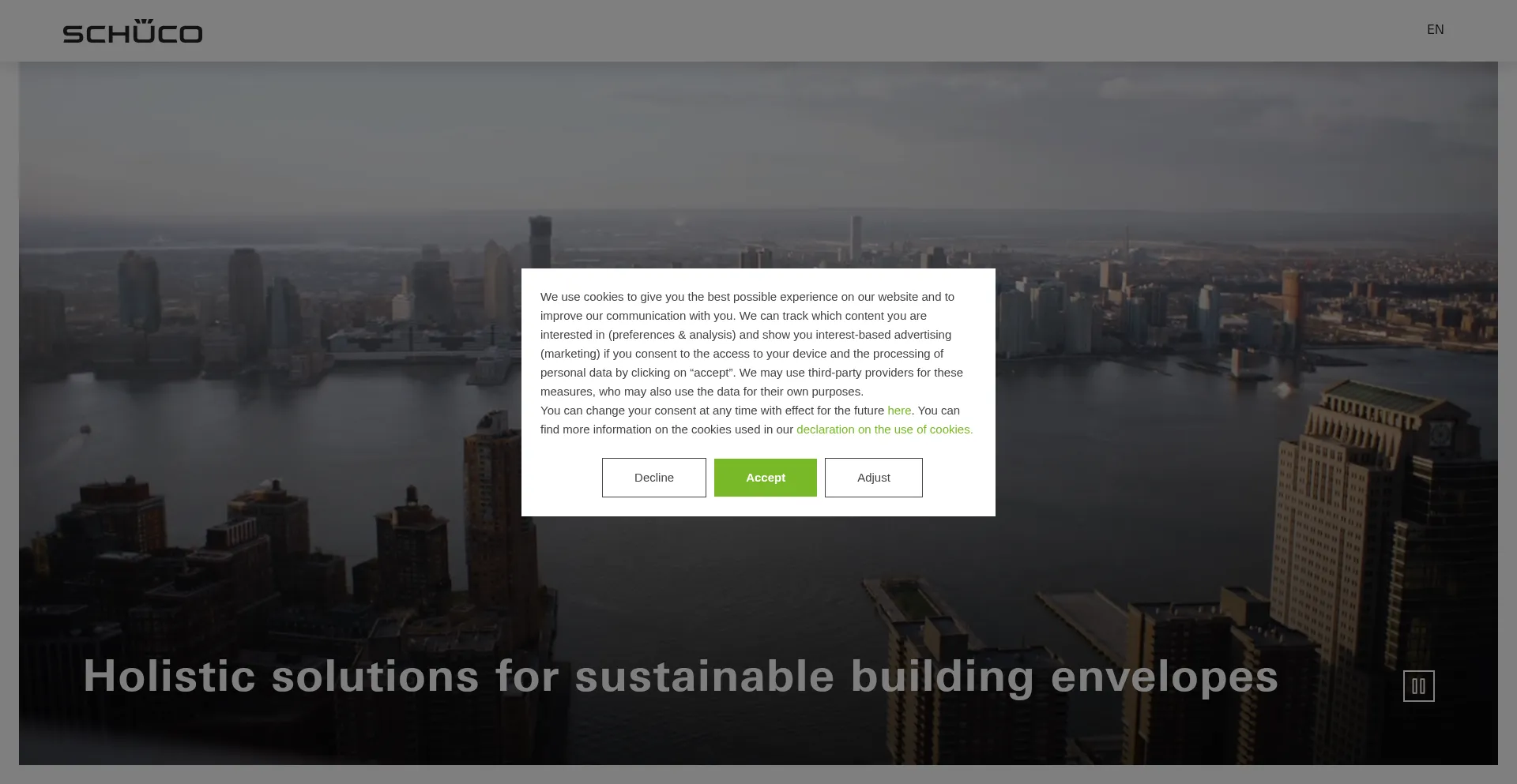Le site web implémente des mécanismes de consentement aux cookies en conformité avec les réglementations de confidentialité telles que RGPD ou CCPA. Cela démontre que schueco.com adhÚre aux standards de protection des données et fournit aux utilisateurs un contrÎle sur les pratiques de collecte de données personnelles.