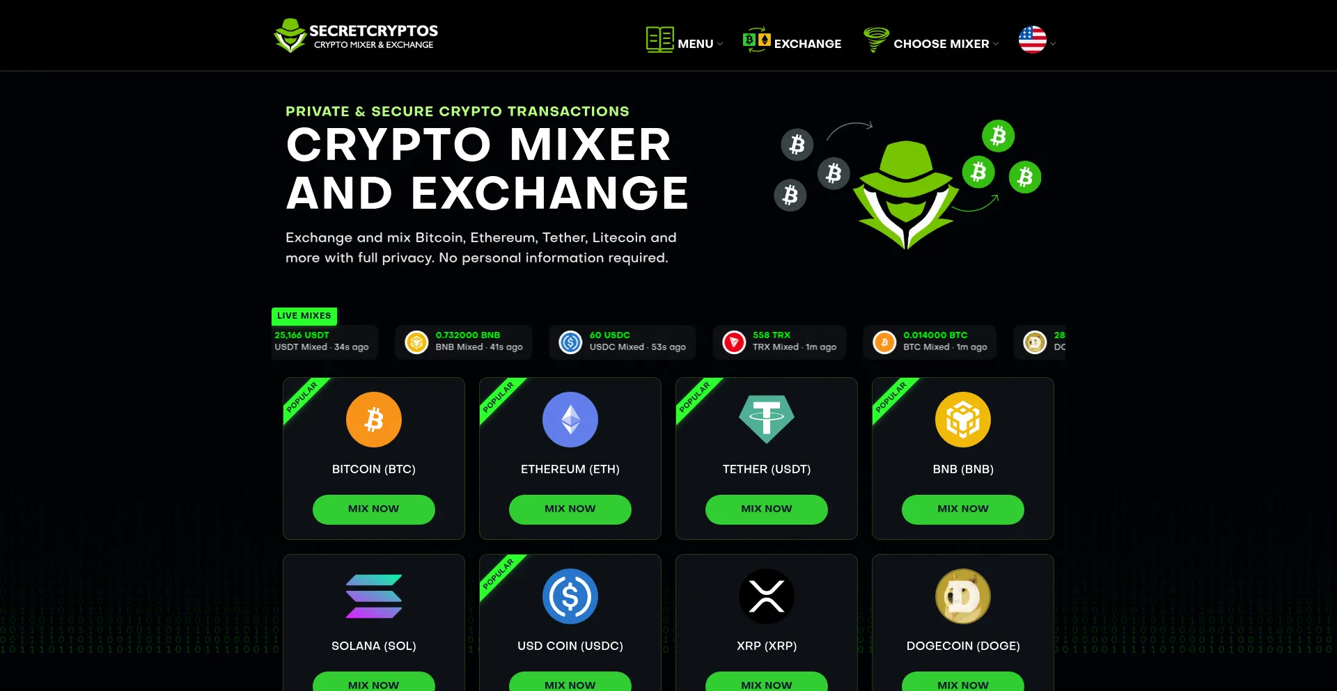 Crypto Mixer & Exchange – Bitcoin, Ethereum & More | SecretCryptos.com