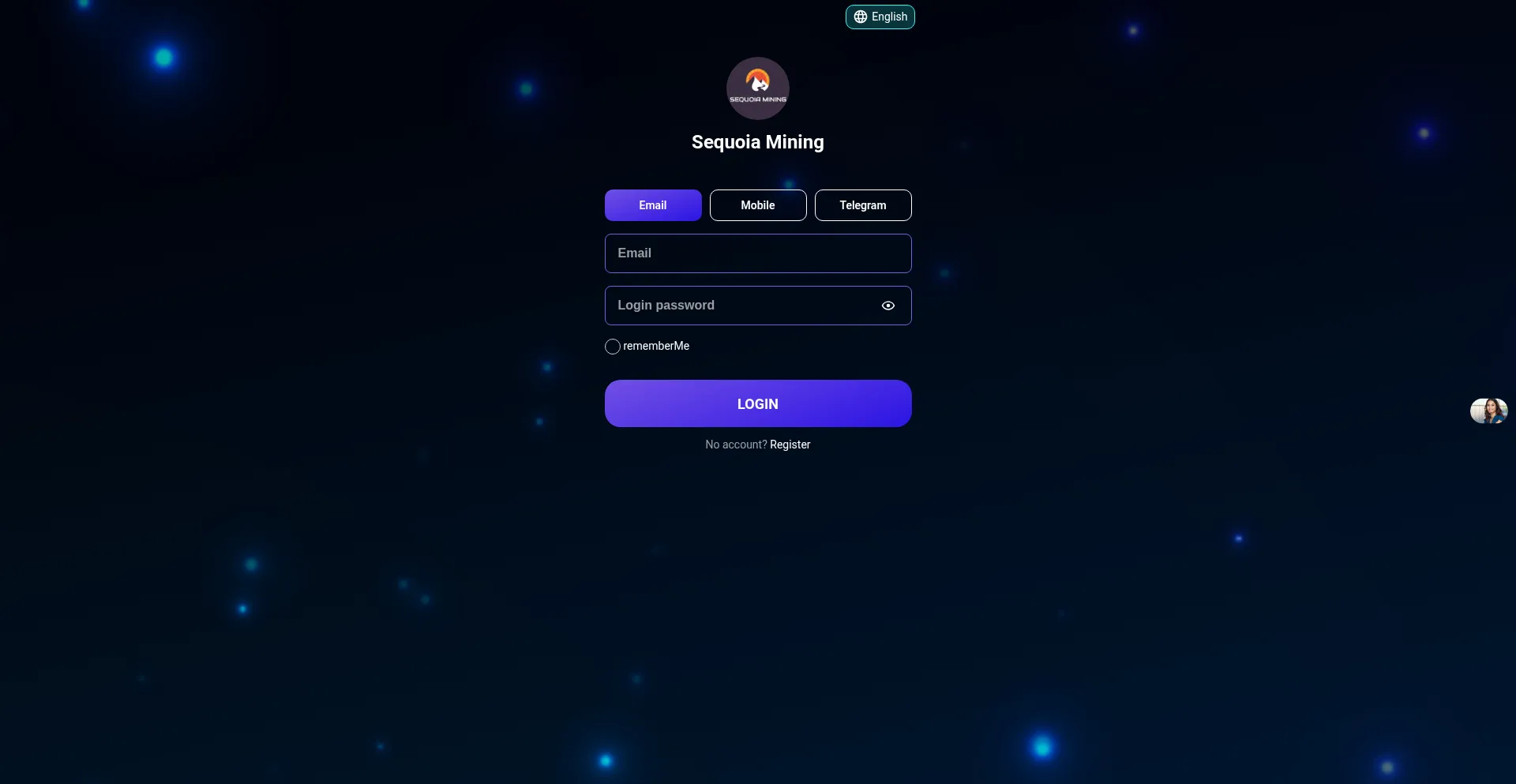 Registration Form, Mining Cryptocurrency, Web Application, Facebook Integration, Young Domain