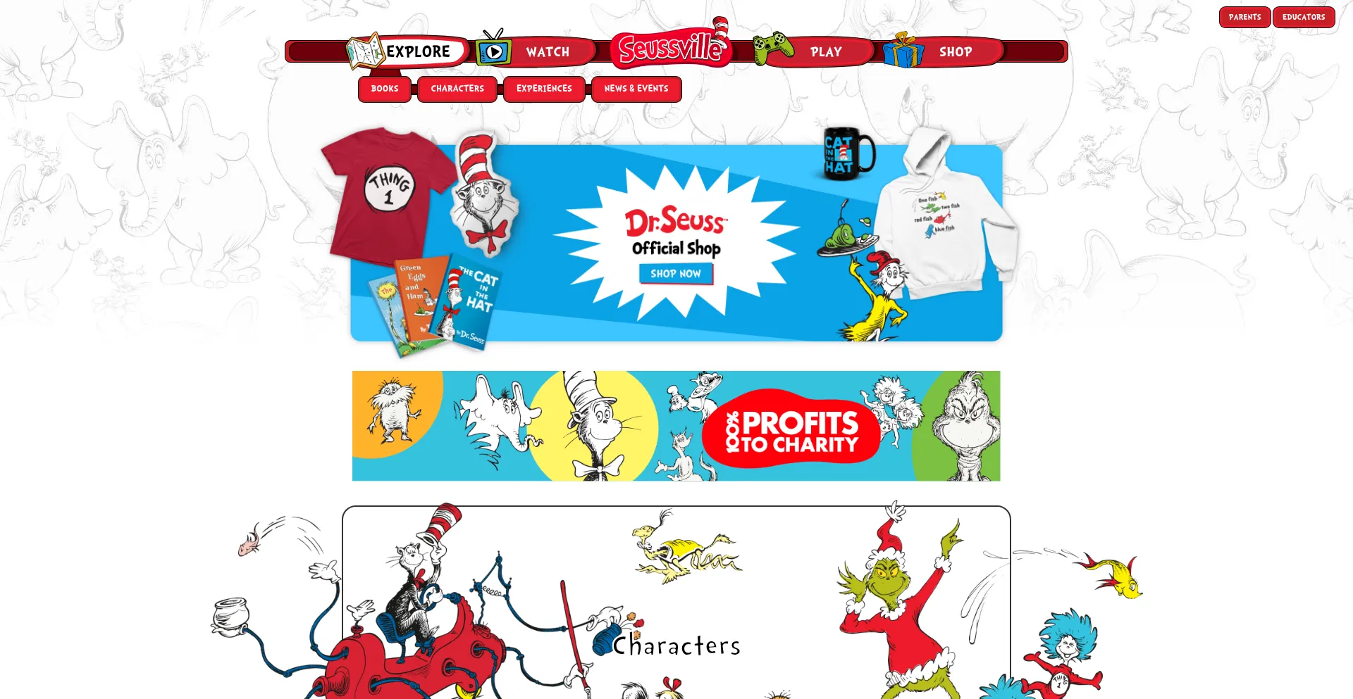 Welcome to Seussville! Find your favorite characters and books at the home of Dr. Seuss.