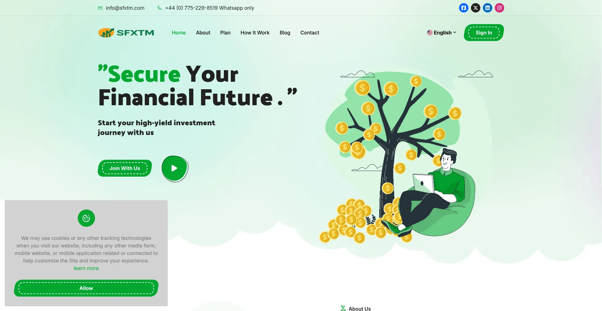 L'analyse révèle que sfxtm.com affiche des icônes ou liens de médias sociaux qui ne se connectent pas à des profils légitimes de médias sociaux. Cette pratique trompeuse est couramment employée pour créer une fausse légitimité et représente un indicateur significatif d'intention frauduleuse nécessitant une prudence immédiate.