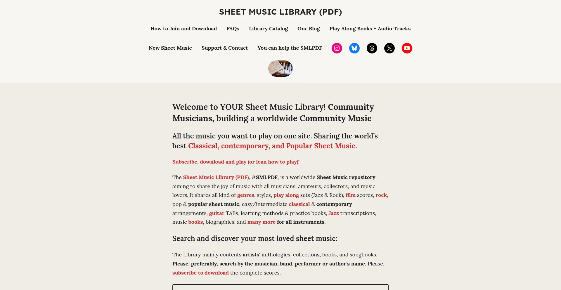 The Sheet Music Library (PDF), #SMLPDF, is a worldwide Sheet Music repository for all musicians and for ALL instruments.