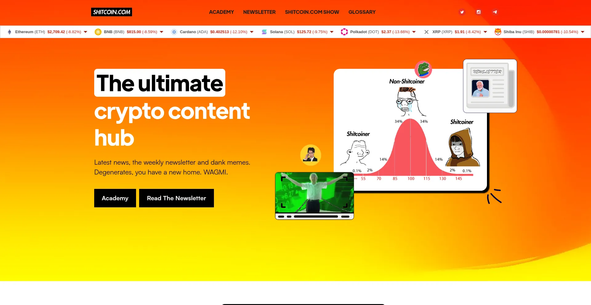 Latest news, the weekly newsletter, academy, crypto content and dank memes. Degenerates, you have a new home. WAGMI.