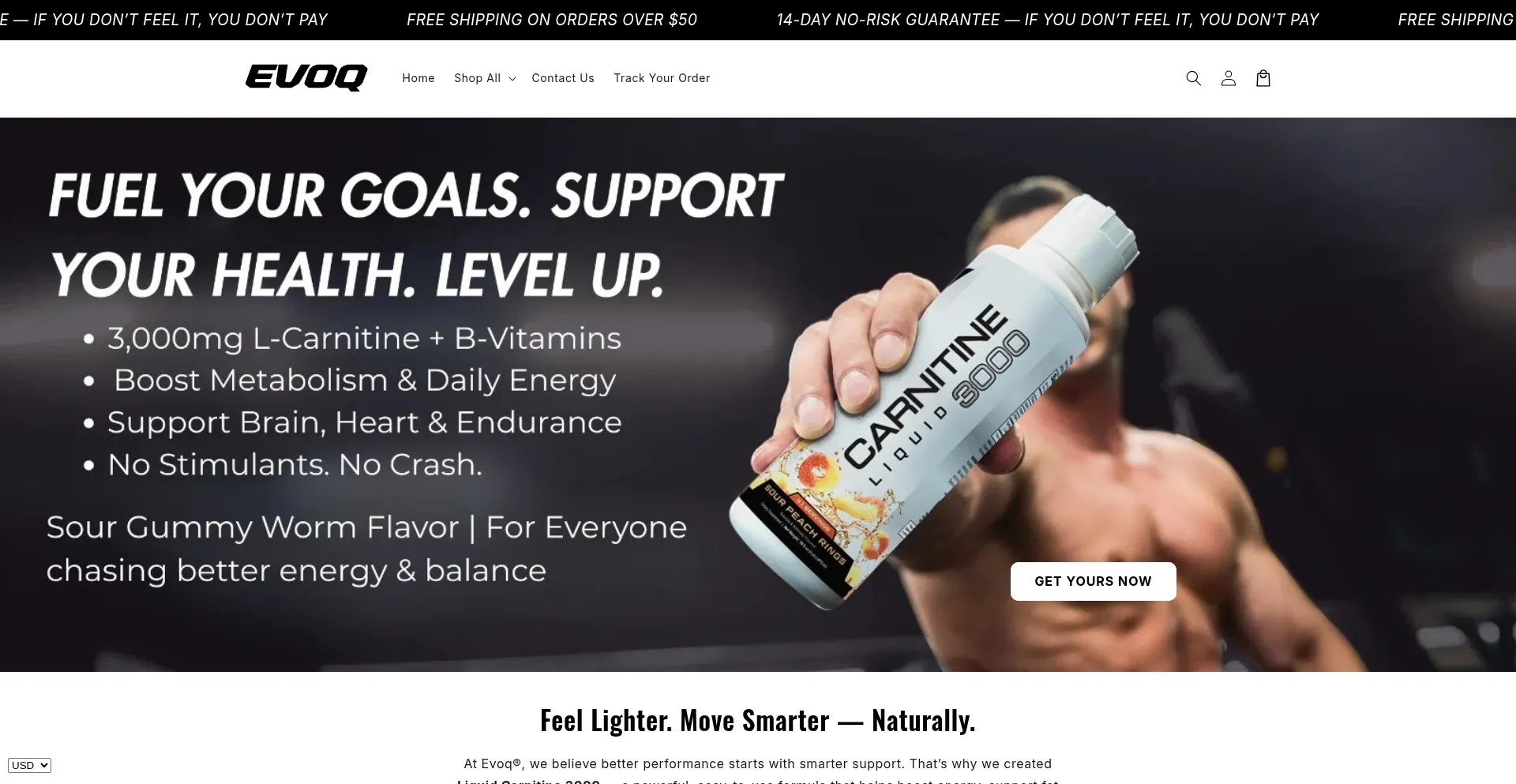 Achieve your peak performance with EVOQ¼'s Liquid Carnitine 3000ℱ and BPC-157 supplements. Designed to help with energy, fat metabolism, and performance.