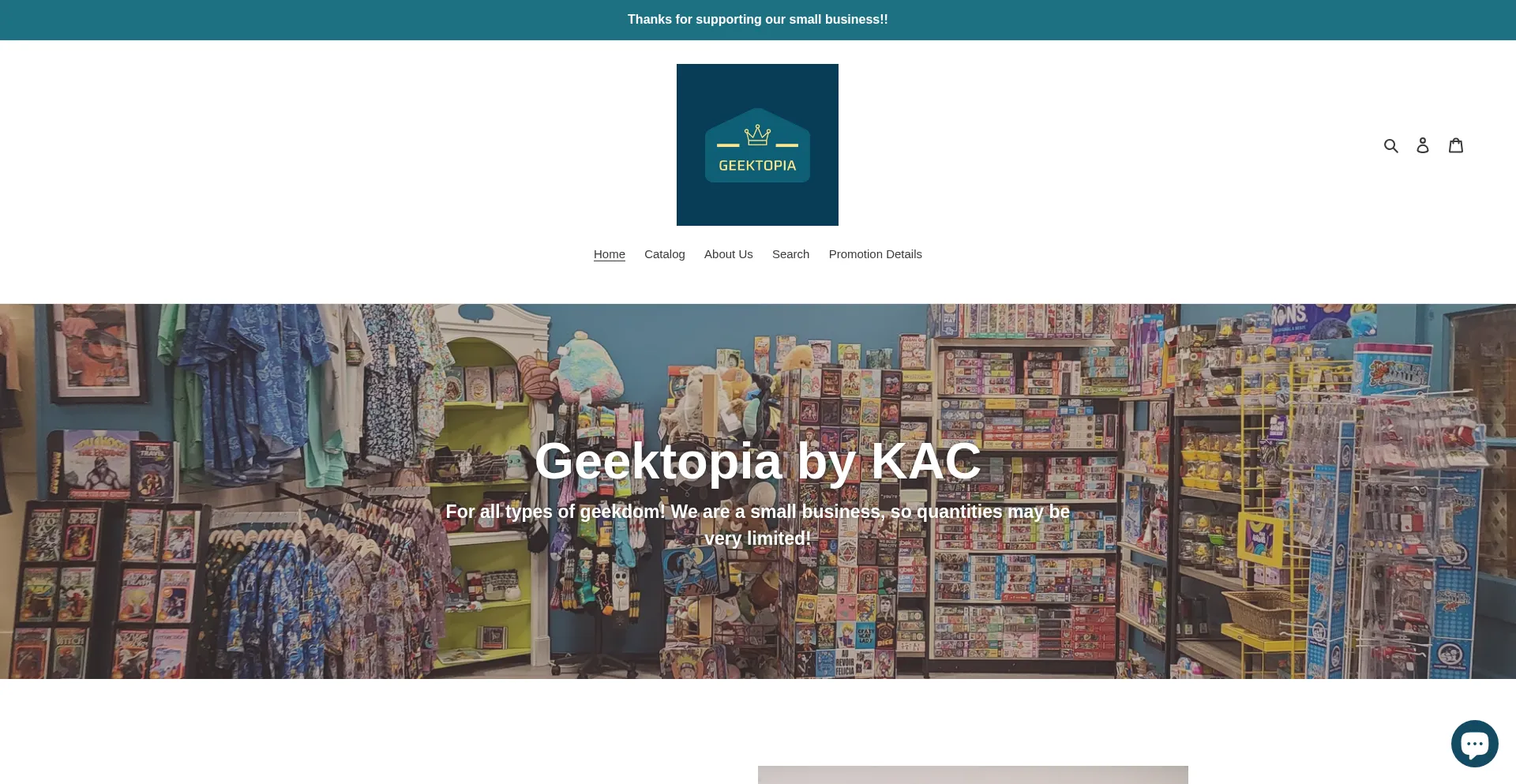 Geektopia by KAC caters to the geek in everyone! We carry toys, games, collectibles, home goods, plush, apparel - you name it, as long as it fits some type of geekdom! And throw...