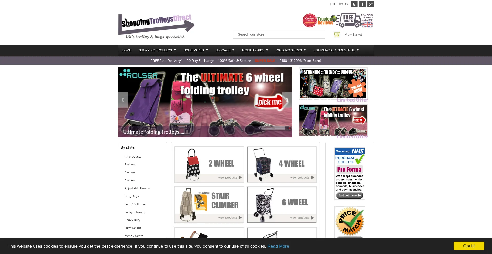 Huge collection of Shopping Trolleys and Trolley Bags to aid the elderly and Funky Designs for fashion trendsetters with Free Delivery at ShoppingTrolleysDirect. Save upto 60% now.