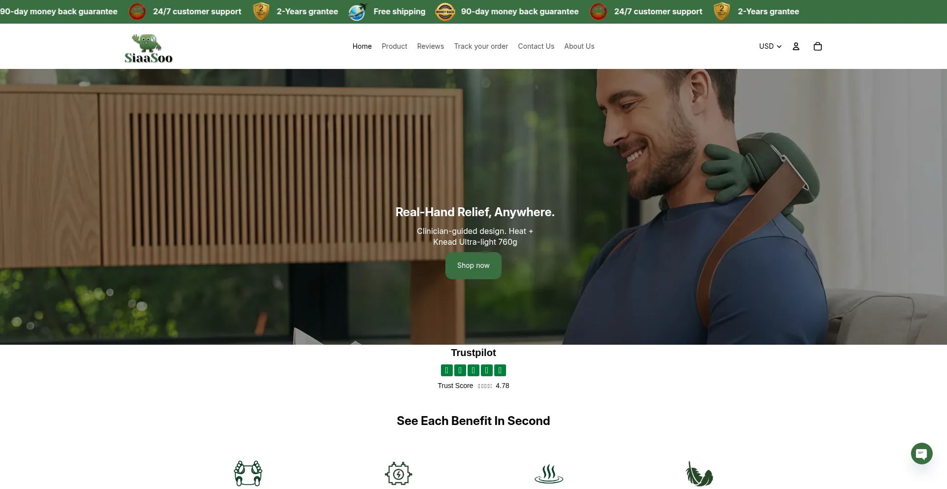 Siaasoo. Feel real human-hand massage with Siaasoo. Its deep, natural pressure targets neck, shoulder, back and body tension—reducing pain within minutes. Perfect for daily re...