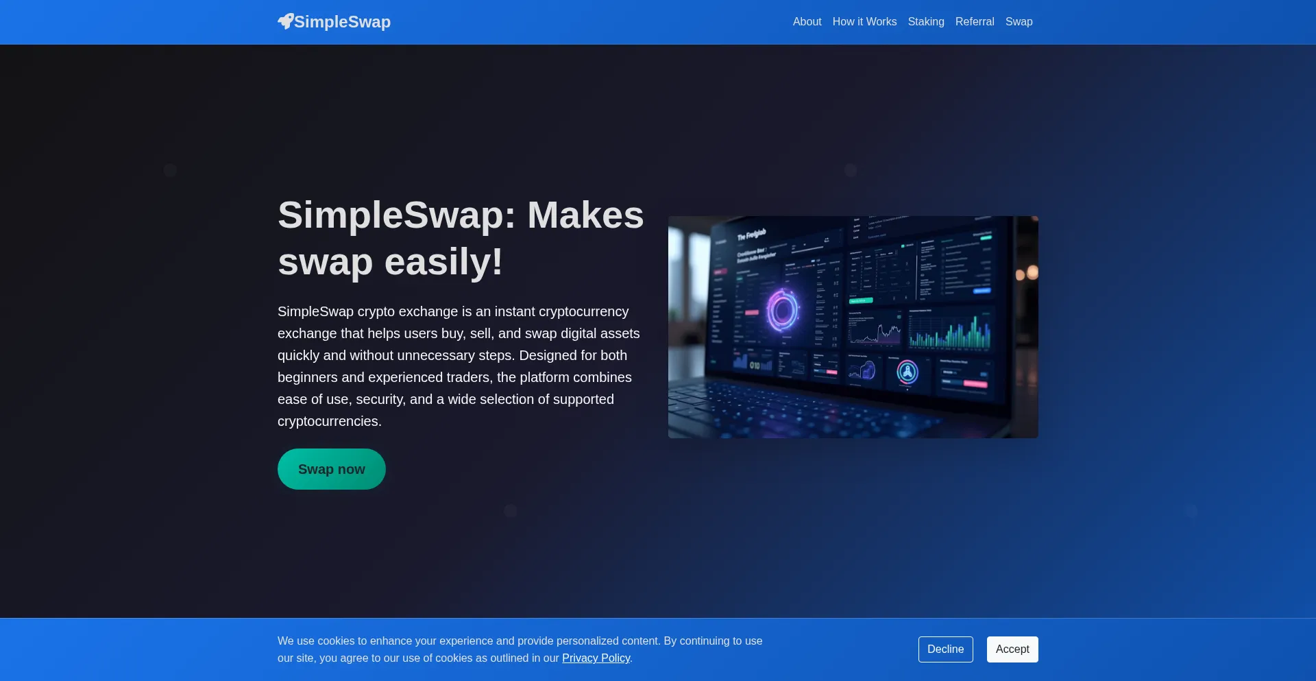 Le site web implémente des mécanismes de consentement aux cookies en conformité avec les réglementations de confidentialité telles que RGPD ou CCPA. Cela démontre que simpleswap.ac adhÚre aux standards de protection des données et fournit aux utilisateurs un contrÎle sur les pratiques de collecte de données personnelles.