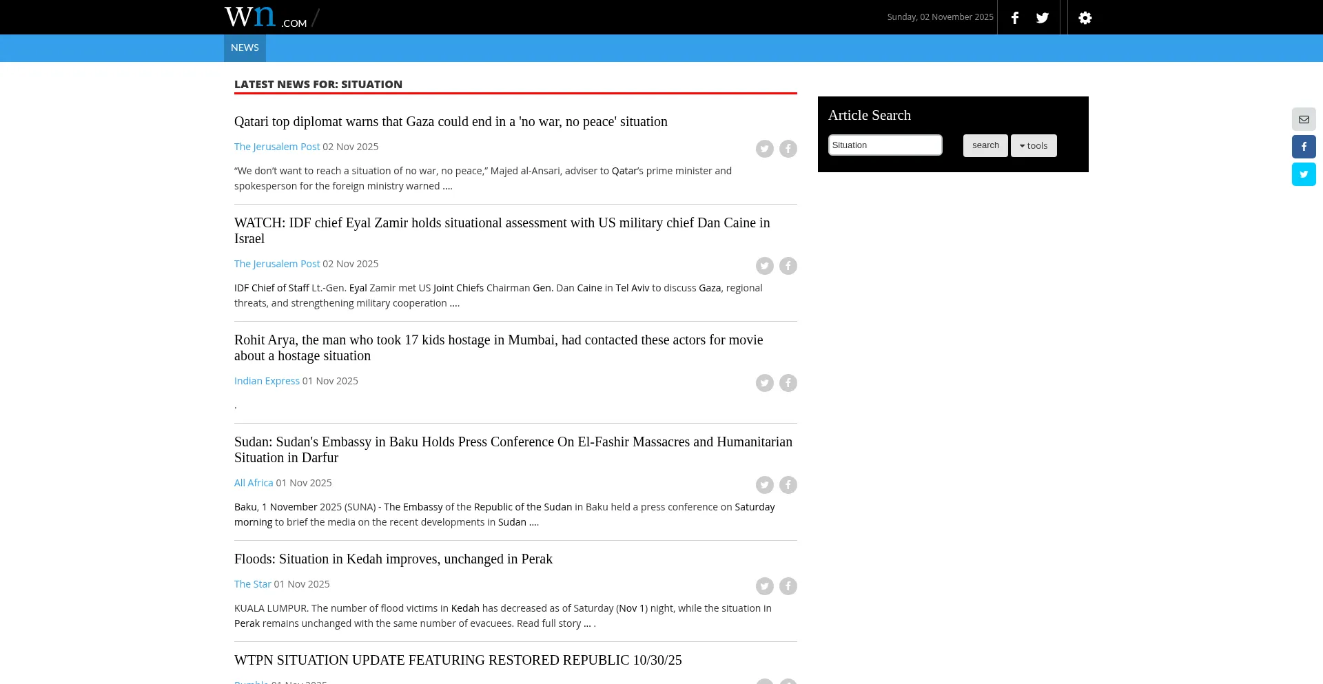 Situation on WN Network delivers the latest Videos and Editable pages for News & Events, including Entertainment, Music, Sports, Science and more, Sign up and share your playlists.