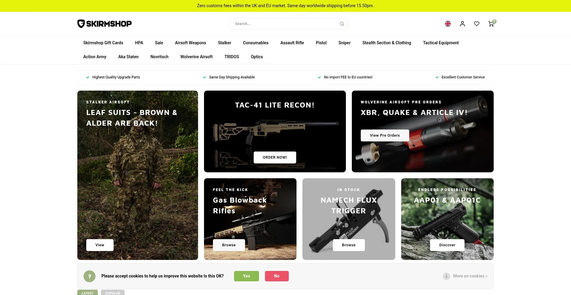 Specialist store providing upgrade parts and externals for Airsoft Sniper Rifles, AEG's and Gas Blowbacks.<br /> Leaf suits and crafting materials are also widely av