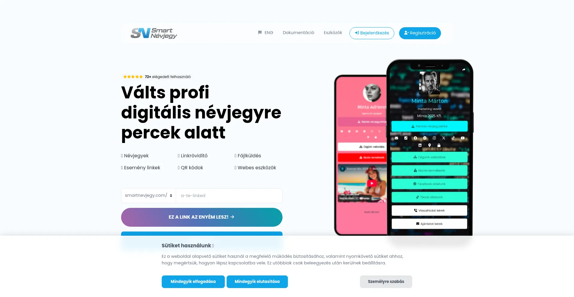KĂ©szĂ­ts digitĂĄlis nĂ©vjegyeket, bio linkeket, QR-kĂłdokat Ă©s fĂĄjlmegosztĂł oldalakat percek alatt – mindezt statisztikĂĄkkal Ă©s profi eszközökkel.