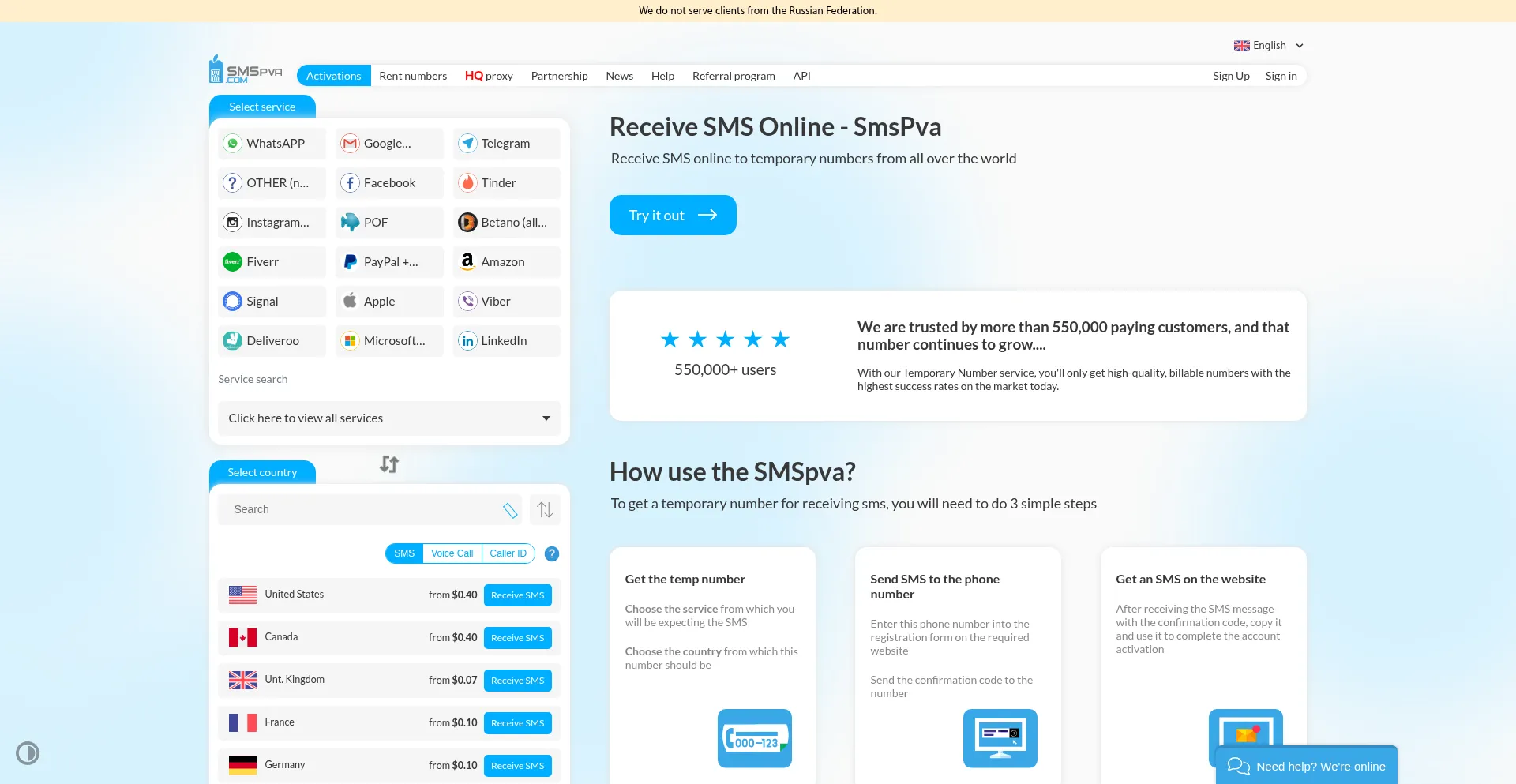 Smspva.com est affilié à la Fédération de Russie, une nation qui a lancé une attaque militaire, commettant ainsi un crime contre l'humanité sous forme de guerre contre l'Ukraine depuis les 3 dernières années. Notre entreprise, Gridinsoft, est basée en Ukraine.
