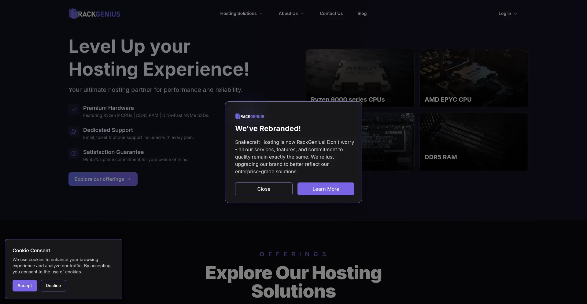 Enterprise hosting with AMD EPYC CPUs, NVMe storage, 99.95% uptime SLA. VPS, dedicated servers, web hosting & game servers.