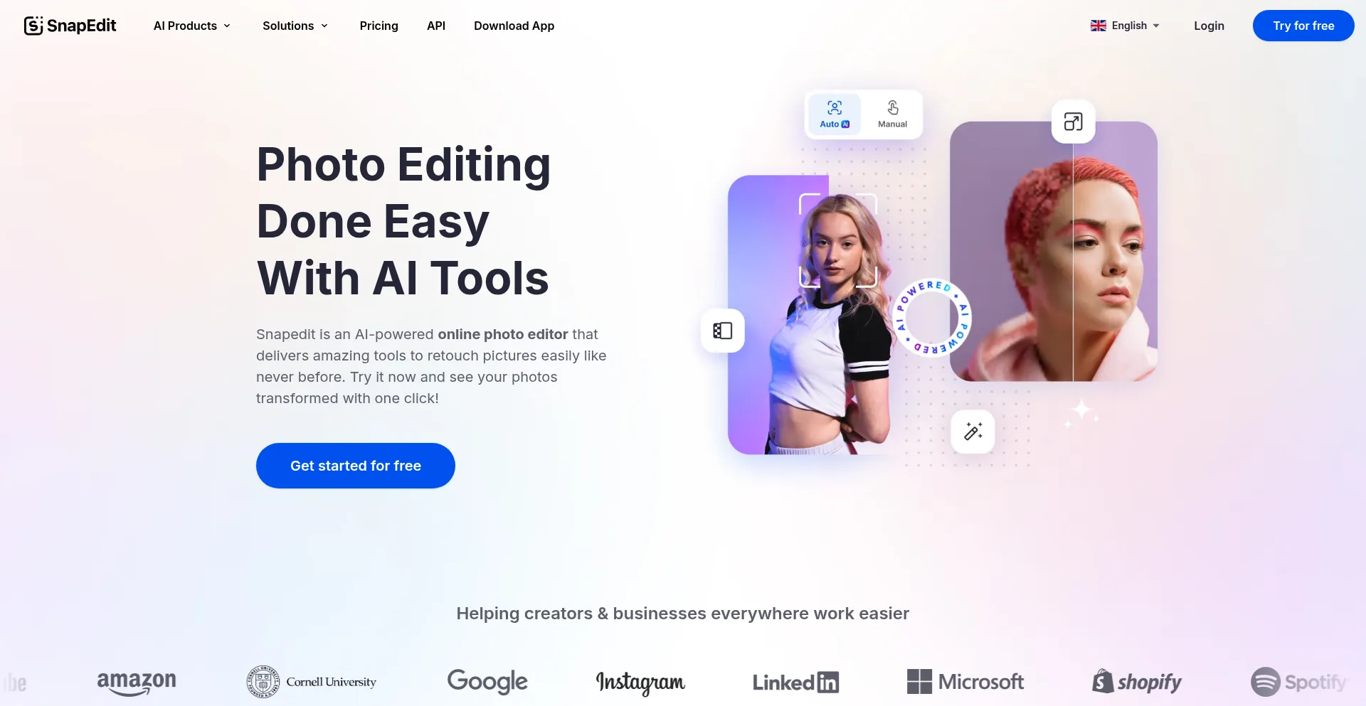 Online photo editor powered by AI - SnapEdit. Edit photos easily with AI photo editing tools. Try it for free to remove background, remove object, enhance photo, and more.