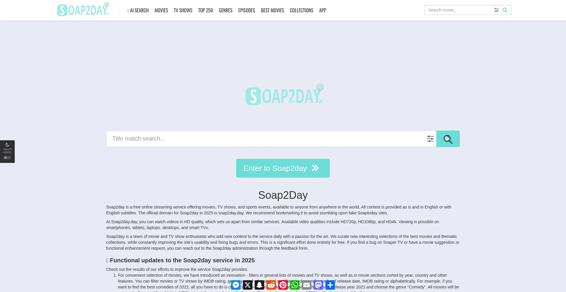 Soap2Day Real Website Site 2025 - watch free HD movies & TV shows online. Movies & episodes are available in HD1080p - choose from 6 online players to watch it on Soaptoday.