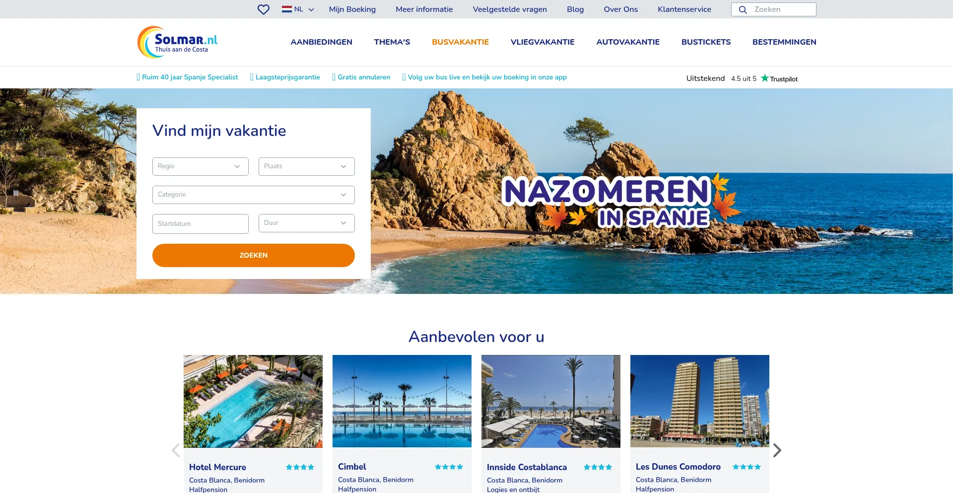 Busvakantie naar Spanje boeken? Bij Solmar vind je de aller beste deals. Solmar, dé Spanje Specialist.