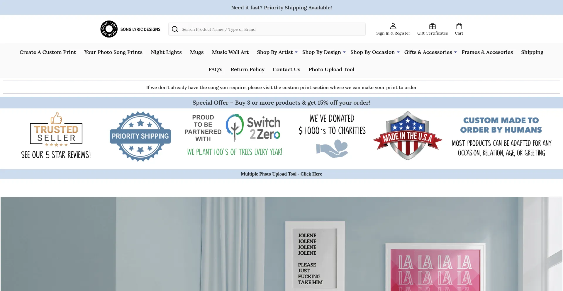 Beautiful wall art prints created from your favourite song lyrics. 1000's of songs available in a variety of designs, sizes & framing options.