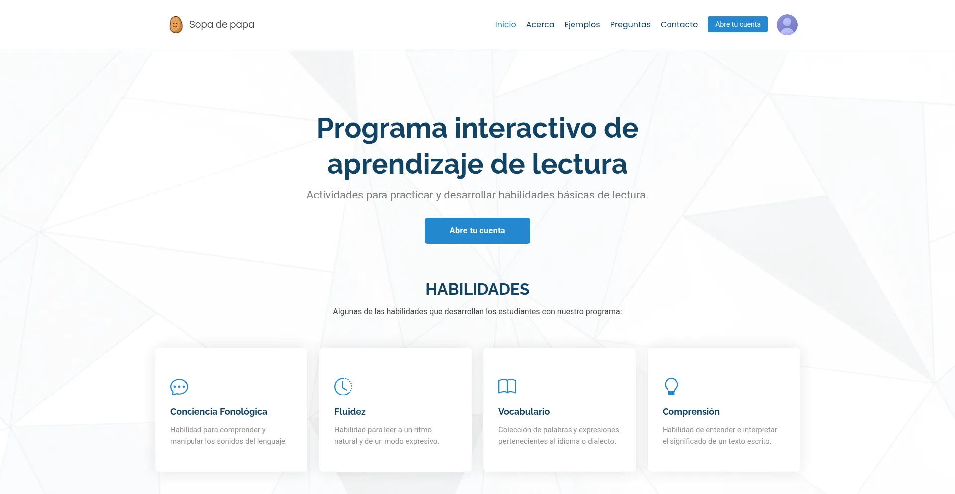 SOPADEPAPA es una herramienta para el aprendizaje båsico de la lectura en español.