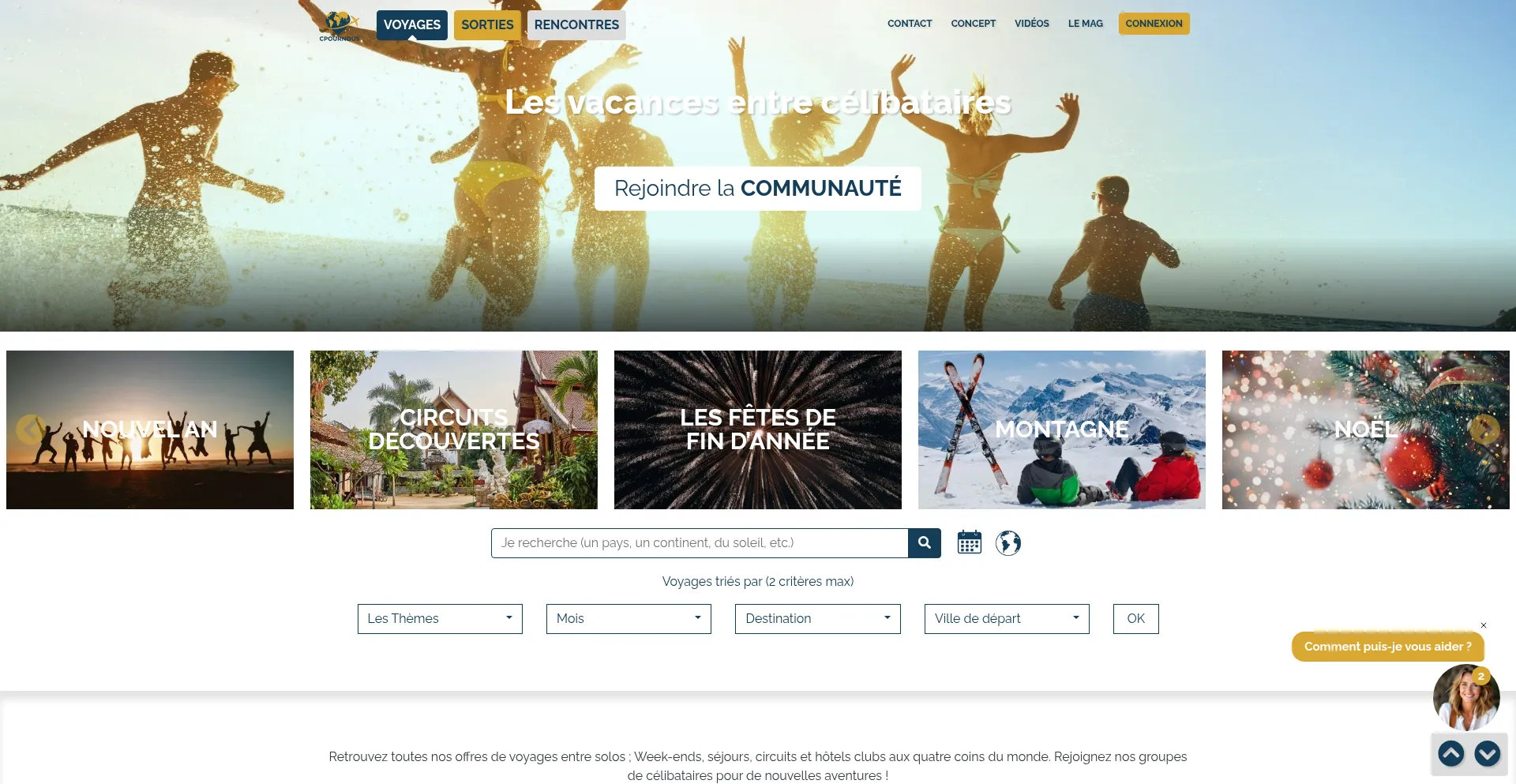CPOURNOUS, les voyages et les vacances entre célibataires