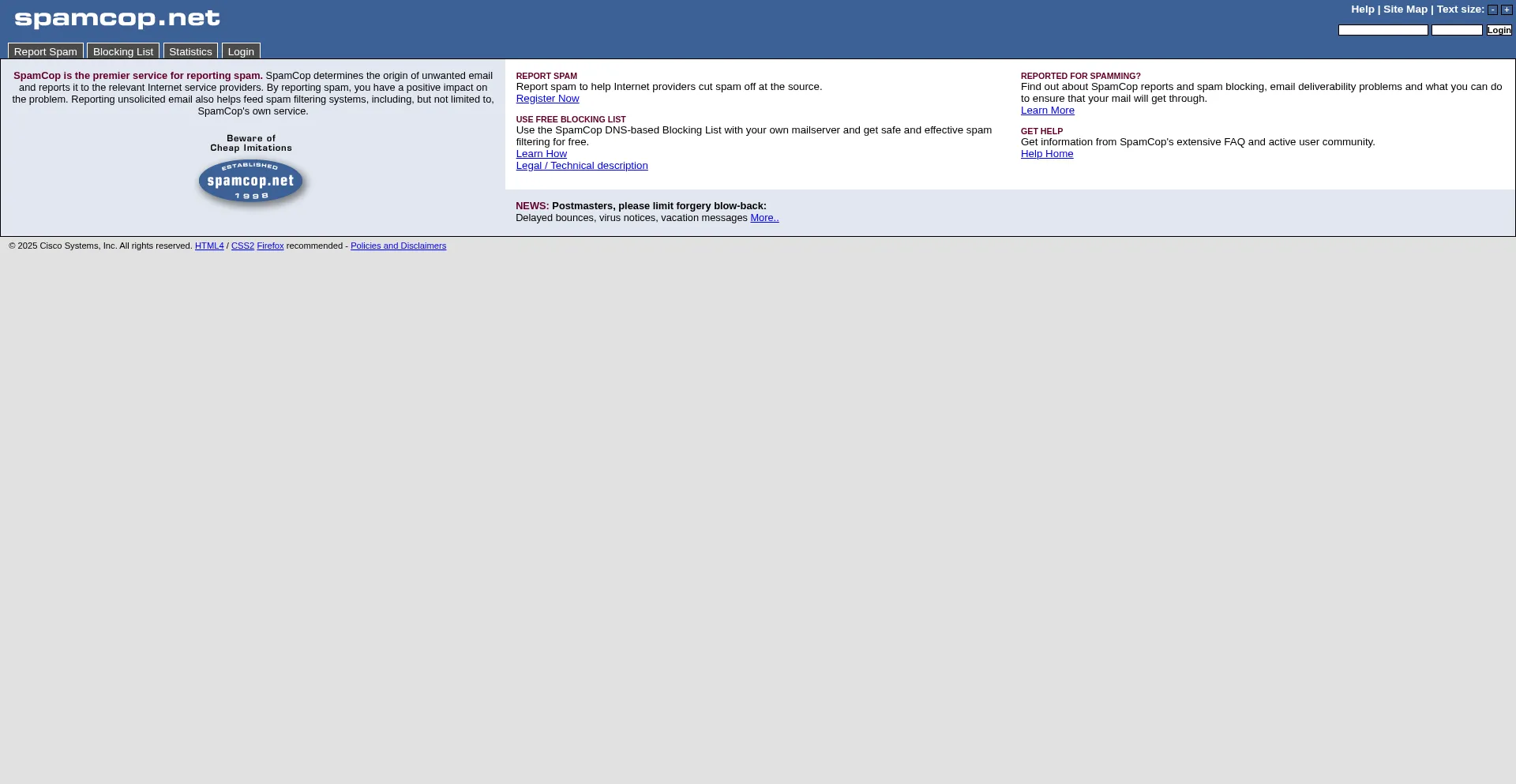 SpamCop.net - Beware of cheap imitations