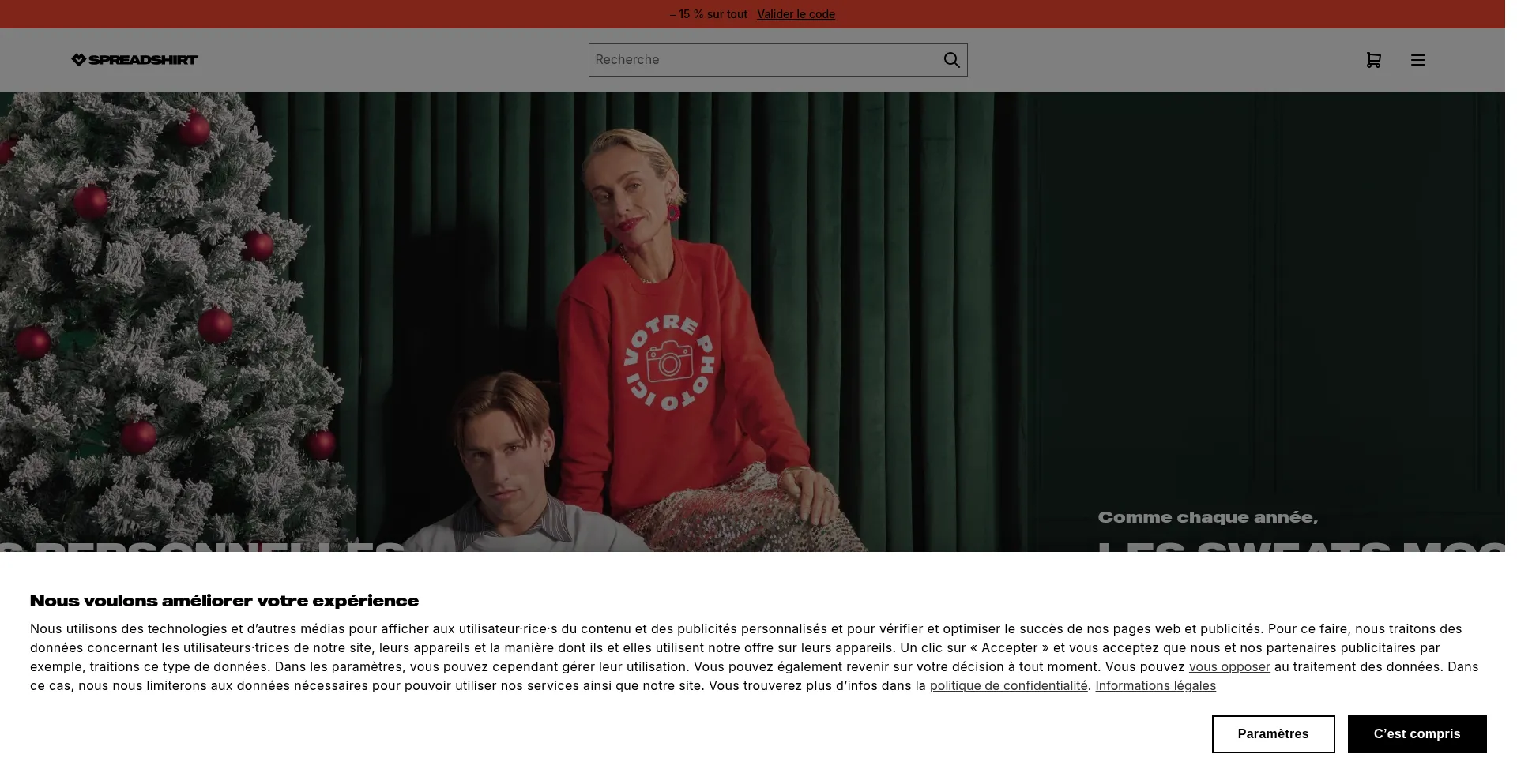 Le site web implémente des mécanismes de consentement aux cookies en conformité avec les réglementations de confidentialité telles que RGPD ou CCPA. Cela démontre que spreadshirt.be adhÚre aux standards de protection des données et fournit aux utilisateurs un contrÎle sur les pratiques de collecte de données personnelles.
