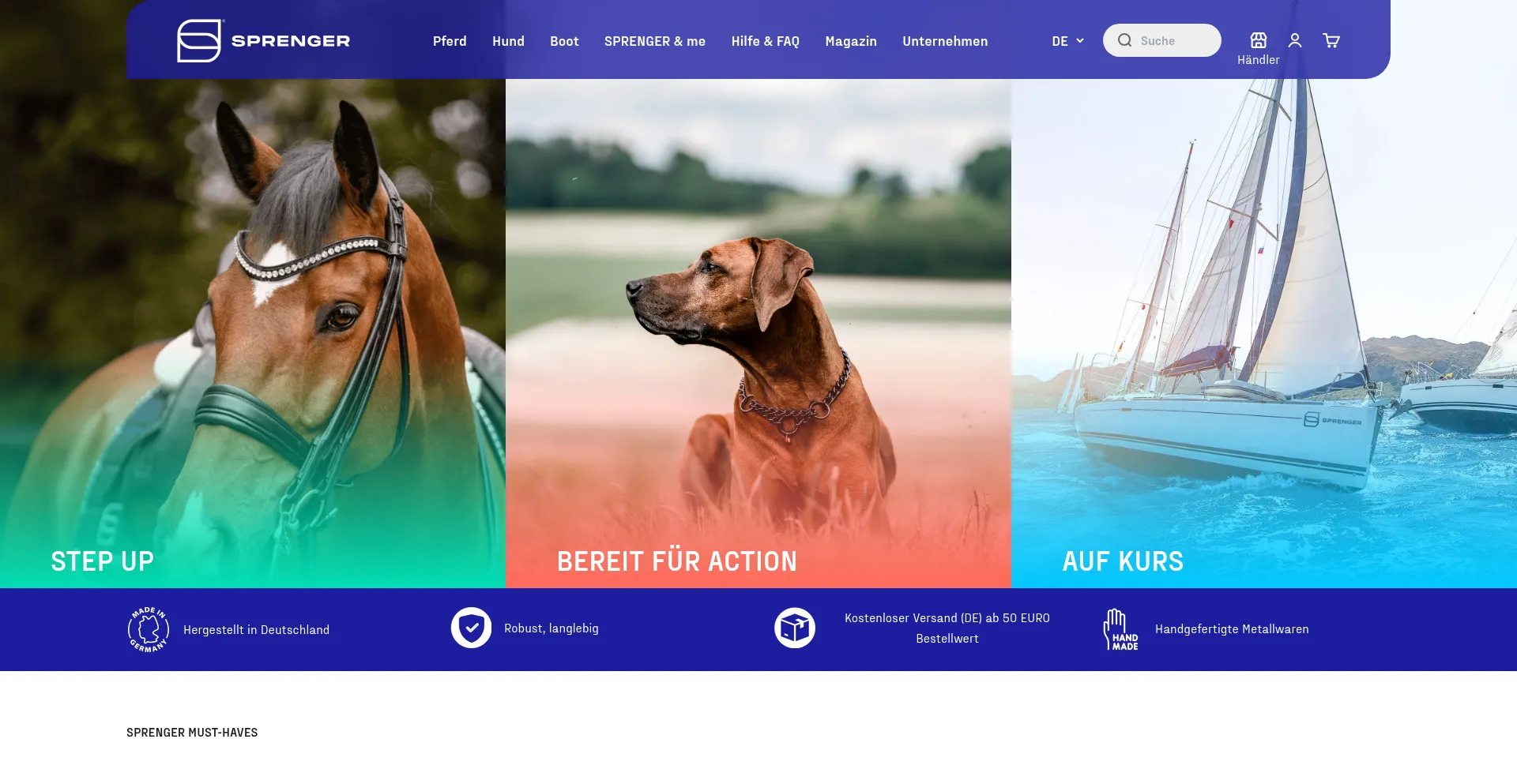 Seit ĂŒber 150 Jahren produziert Herm. Sprenger hochwertige Produkte fĂŒr Pferde-, Hunde- & Bootssport ✔ QualitĂ€t "Made in Iserlohn" ✔ Weltweit geschĂ€tzt ➀ Mehr er...